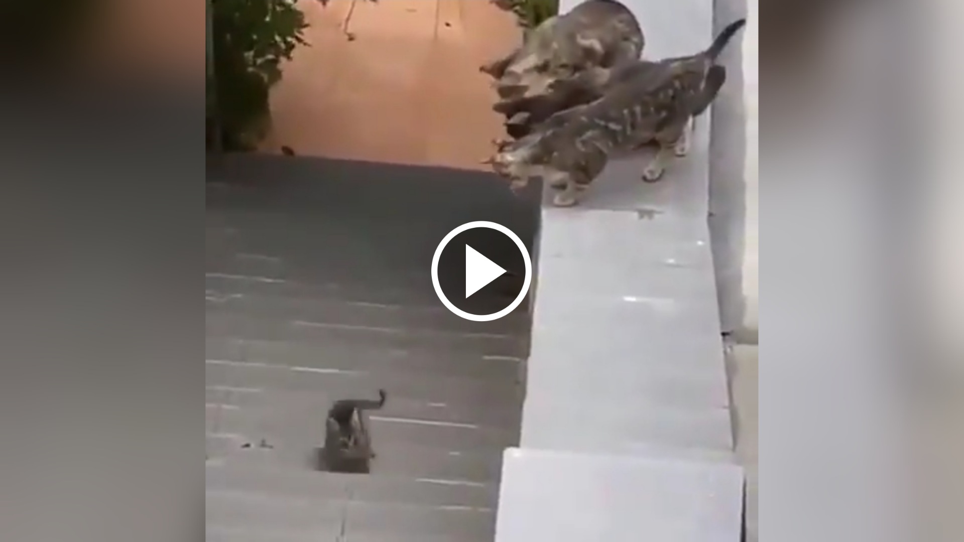 ಟ್ವಿಟರ್ ಬಳಕೆದಾರರೊಬ್ಬರು ಹಂಚಿಕೊಂಡಿರುವ ಈ ವೀಡಿಯೋದಲ್ಲಿ ಮೂರು ನಾಲ್ಕು ಬೆಕ್ಕುಗಳ ಒಂದು ಗುಂಪು ಯಾವುದೋ ಕಟ್ಟಡದ ಮೇಲಕ್ಕೆ ಹತ್ತಿ ಎಲ್ಲೋ ಹೋಗಲು ಹೊರಟಿವೆ. ಇದರಲ್ಲಿ ಮೂರು ಬೆಕ್ಕುಗಳು ದೊಡ್ಡವು, ಒಂದು ಚಿಕ್ಕ ಬೆಕ್ಕು. ದೊಡ್ಡ ಬೆಕ್ಕುಗಳು ಮೂರೂ ಕೂಡಾ ಮೆಟ್ಟಿಲೇರಿ ,ಅಲ್ಲಿಂದ ಒಂದು ಎತ್ತರದ ಕಟ್ಟೆಯ ಮೇಲೆ ಎಗರಿ ಕುಳಿತಿವೆ. ಆದರೆ ಸಣ್ಣ ಬೆಕ್ಕಿನ ಮರಿ ಹಿಂದೆ ನಿಧಾನವಾಗಿ ಬರುತ್ತಿದ್ದು, ಅದರ ಕೈಲಿ ಹಾಗೆ ಮೇಲೇರಿ ಬರುವುದು ಸಾಧ್ಯವಿರಲಿಲ್ಲ. ಆದರೆ ಬೆಕ್ಕುಗಳು ಆ ಮರಿಯನ್ನು ಅಲ್ಲಿಂದ ಬಿಟ್ಟು ಹೋಗಲು ಸಿದ್ಧ ಕೂಡಾ ಇಲ್ಲ. ಆಗ ಒಂದು ಬೆಕ್ಕು ತಾನು ಕುಳಿತಿದ್ದ ಕಡೆಯಿಂದ ಇಳಿದು ಬಂದು ಆ ಮರಿಯನ್ನು ಬಾಯಲ್ಲಿ ಕಚ್ಚಿಕೊಂಡಿದೆ.