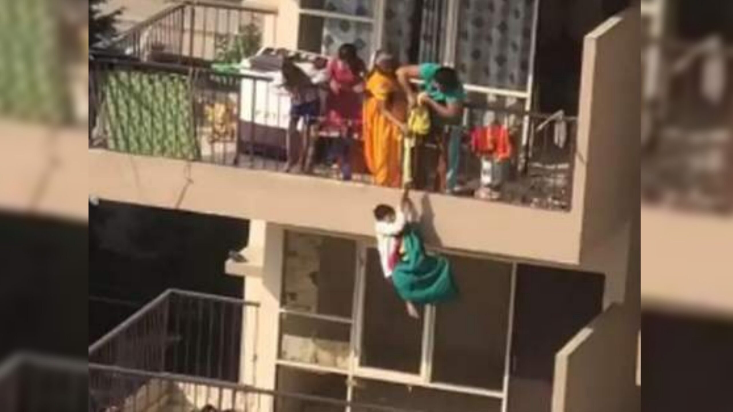ವೈರಲ್ ಆಗುತ್ತಿರುವ ಈ ವಿಡಿಯೋ ದೆಹಲಿ ಹತ್ತಿರದ ಫರಿದಾಬಾದ್ ನ ಸೆಕ್ಟರ್ 82 ರಲ್ಲಿ ಇರುವ ಫ್ಲೋರಿಡಾ ಸೊಸೈಟಿಯಿಂದ ವರದಿಯಾಗಿದೆ. ಘಟನೆ ತಿಳಿದ ನಂತರ AajTak ಟೀಮ್ ಪ್ರಸ್ತುತ ಮಹಿಳೆಗೆ ಭೇಟಿಯಾಗಿ ಈ ಪ್ರಸಂಗದ ಬಗ್ಗೆ ಕೇಳಿದ್ದಾರೆ. ಆಗ ಮಹಿಳೆಯು ಹೇಳಿದ ಉತ್ತರ ಕೇಳಿ ಅಲ್ಲಿದ್ದ ಎಲ್ಲರಿಗೂ ಶಾಕ್ ಆಗಿದೆ. 9 ನೇ ಅಂತಸ್ತಿನ ಬಾಲ್ಕನಿಯಲ್ಲಿ ಪ್ರಸ್ತುತ ಮಹಿಳೆಯ ಬಟ್ಟೆಗಳು ಕೆಳಗೆ ಬಿಟ್ಟಿದ್ದವು. ಆ ಮನೆಗೆ ಬೀಗ ಇರುವ ಕಾರಣದಿಂದ ಕೆಳಗೆ ಹೋಗಿ ತನ್ನ ಬಟ್ಟೆಗಳನ್ನು ತೆಗೆದುಕೊಂಡು ಬರುವುದು ಸಾಧ್ಯವಿರಲಿಲ್ಲ. ಈ ಕಾರಣದಿಂದಾಗಿ ತನ್ನ ಮಗುವಿಗೆ ಸೀರೆಯಿಂದ ಕಟ್ಟಿ ಹತ್ತನೇ ಅಂತಸ್ತಿನಿಂದ 9ನೆಯ ಅಂತಸ್ತಿನ ಗ್ಯಾಲರಿಗೆ ಬಿಟ್ಟಿದ್ದಾಳೆ. ಈ ದೃಶ್ಯವನ್ನು ಎದುರಿನ ಬಿಲ್ಡಿಂಗ್ ನಲ್ಲಿರುವ ನಿವಾಸಿಗರು ತಮ್ಮ ಮೊಬೈಲ್ ಕ್ಯಾಮೆರಾದಲ್ಲಿ ಸೆರೆ ಹಿಡಿದಿದ್ದಾರೆ. ಸದ್ಯಕ್ಕೆ ಇದೇ ವಿಡಿಯೋ ಸೋಶಿಯಲ್ ಮೀಡಿಯಾದಲ್ಲಿ ವೈರಲ್ ಆಗುತ್ತಿದೆ.