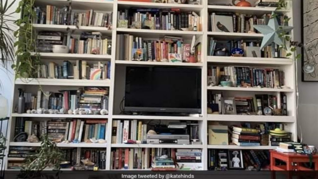 ಸದ್ಯಕ್ಕೆ ಸೋಶಿಯಲ್ ಮೀಡಿಯಾ ದಲ್ಲಿ ಒಂದು ಫೋಟೋ ತುಂಬಾ ವೈರಲ್ ಆಗುತ್ತಿದೆ. ಅದಕ್ಕೆ ಕಾರಣ ಅದರಲ್ಲಿ ಅಡಗಿರುವ ಬೆಕ್ಕು. ಹೌದು ಈ ಫೋಟೋ ದಲ್ಲಿ ಬುಕ್ ಗಳ ಮಧ್ಯದಲ್ಲಿ ಒಂದು ಬೆಕ್ಕು ಅಡಗಿಕೊಂಡಿದೆ. ಅದಕ್ಕಾಗಿ ಸಾಮಾಜಿಕ ಮಾಧ್ಯಮಗಳಲ್ಲಿ ಹುಡುಕಾಟ ಶುರುವಾಗಿದೆ. ರವಿವಾರ ದಿನದಂದು ಟ್ವಿಟ್ಟರ್ ಮಾಧ್ಯಮದಲ್ಲಿ ಕೇಟ್ ಹಿಂಡ್ಸ್ ಅವರು ಈ ಫೋಟೋ ಶೇರ್ ಮಾಡಿದ್ದಾರೆ. ಈ ಫೋಟೋದಲ್ಲಿ ಬಹಳಷ್ಟು ಪುಸ್ತಕಗಳಿವೆ ಅಲ್ಲದೆ ಅವುಗಳ ಮಧ್ಯದಲ್ಲಿ ಒಂದು ಟಿವಿ ಸಹ ಇದೆ. ಹಿಂಡ್ಸ್ ಅವರು ಫೋಟೋ ಶೇರ್ ಮಾಡುವಾಗ ತಮ್ಮ ಫಾಲೋರ್ಸ್ ಗಳಿಗೆ ಈ ಫೋಟೋದಲ್ಲಿ ಬೆಕ್ಕು ಹುಡುಕಲು ಹೇಳಿದ್ದಾರೆ. ಟ್ವಿಟ್ಟರ್ ನಲ್ಲಿ ಎಷ್ಟೋ ಜನರು ಹುಡುಕುವ ಪ್ರಯತ್ನ ಮಾಡಿದ್ದಾರೆ, ಆದ್ರೆ ಅದು ಸಾಧ್ಯವಾಗಿಲ್ಲ.