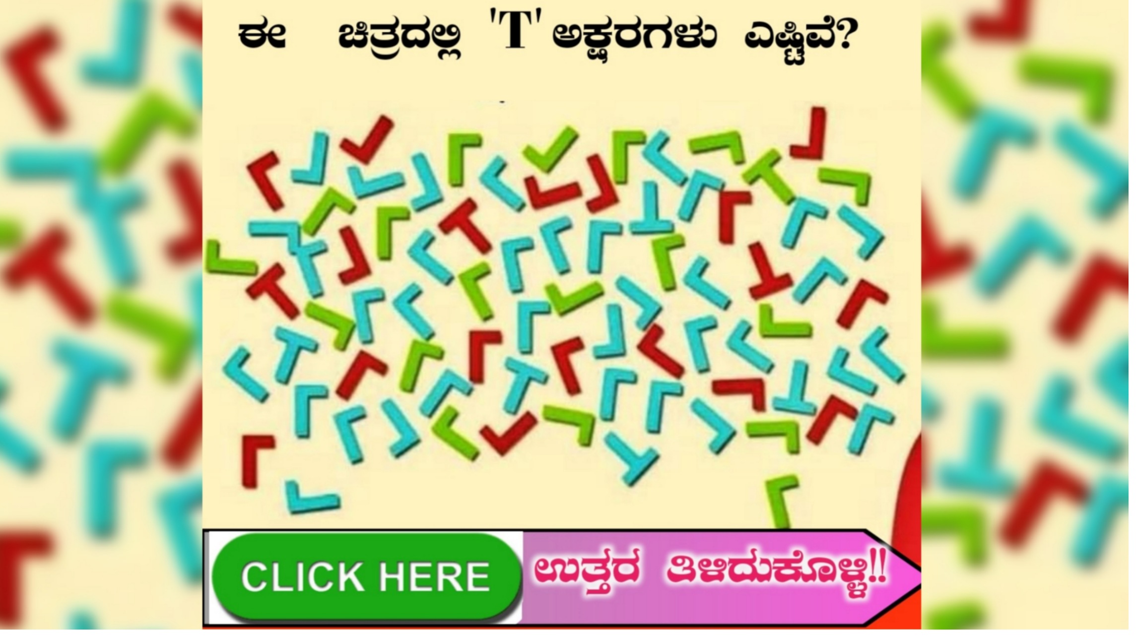 ಈ ಫೋಟೋದಲ್ಲಿ ‘T’ ಅಕ್ಷರಗಳು ಎಷ್ಟಿವೆ? ಫೋಟೋ Zoom ಮಾಡಿ ನೋಡಿ ಗೊತ್ತಾಗುತ್ತೆ!!!