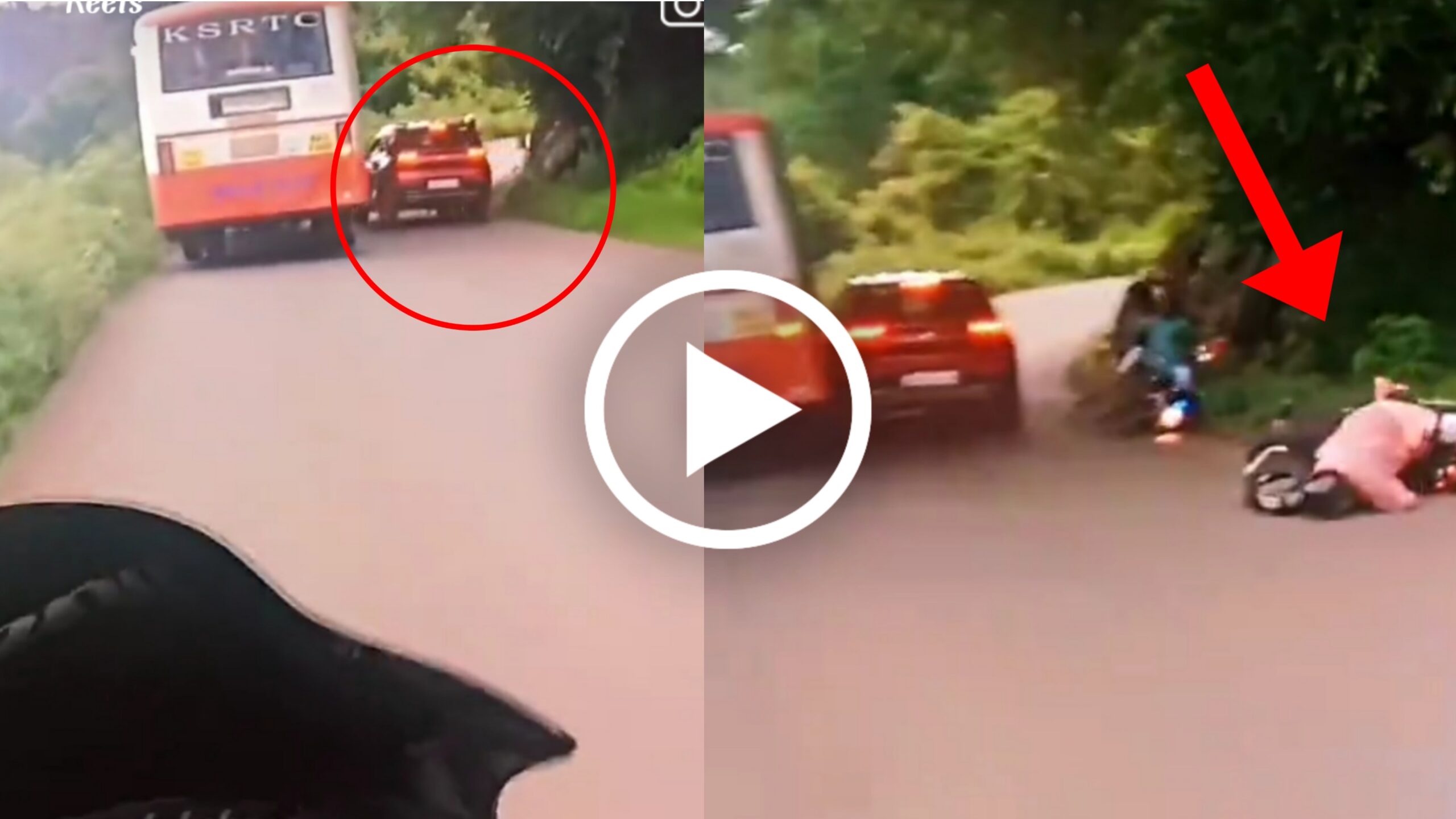 ಪ್ರಸ್ತುತ ವಿಡಿಯೋದಲ್ಲಿ ಘಾಟ್ ಸೆಕ್ಷನ್ ನಲ್ಲಿ KSRTC ಯ ಒಂದು ಬಸ್ಸು ಚಲಿಸುತ್ತಿರುವುದು ಕಂಡು ಬರುತ್ತಿದೆ. ಬಸ್ಸು ಇಳಿಜಾರಿನ ಕಡೆಗೆ ಹೋಗುತ್ತಿರುವುದರಿಂದ ಸಹಜವಾಗಿಯೇ ವೇಗದಲ್ಲಿದೆ, ಆದರೂ ತನ್ನ ಲೇನ್ ನಲ್ಲಿ ಸರಿಯಾಗಿ ಚಲಿಸುತ್ತಿದೆ. ಆದರೆ ಅದರ ಬಲಭಾಗಕ್ಕೆ ಪಕ್ಕದಲ್ಲಿಯೇ ಒಂದು ಕೆಂಪು ಬಣ್ಣದ ಕಾರು ಒಳನುಗ್ಗಿತ್ತದೆ. ರಸ್ತೆ ನೋಡಿದಾಗ ಮುಂದೆ ಬಲಭಾಗಕ್ಕೆ ಟರ್ನ್ ಇರುವದು ಕಂಡು ಬರುತ್ತಿದೆ. ಇಷ್ಟಾದರೂ ಕಾರಿನ ಚಾಲಕ ಉಸಿರೂ ಸಹ ತೆಗೆದುಕೊಳ್ಳದೆ ಹಾಗೆಯೇ ಮುಂದೆ ಬಲಕ್ಕೆ ಟರ್ನ್ ಇದ್ದರೂ ಬಸ್ಸಿಗೆ ಓವರ್ ಟೇಕ್ ಮಾಡಿ ಮುಂದೆ ಹೋಗಲು ಯತ್ನಿಸಿದ್ದಾನೆ. ಈಗ ಹೇಳಿ ಎದುರಿನಿಂದ ಬರುವರಿಗೆ ಎಲ್ಲಿದೆ ದಾರಿ? ಇಷ್ಟು ಪರಿಜ್ಞಾನ ಆ ಕಾರಿನ ಚಾಲಕನಿಗೆ ಇರಬೇಡವೆ? ಸರಿಯಾಗಿ ಅದೇ ಸಮಯಕ್ಕೆ ಅಲ್ಲಿ ಎರಡು ಮೂರು ಬೈಕ್ ಸವಾರರು ಬಂದಿರುವುದರಿಂದ ದೊಡ್ಡ ಅನಾಹುತ ನಡೆದಿದೆ. ಆದರೆ ಅದೃಷ್ಟ ಚೆನ್ನಾಗಿರುವುದರಿಂದ ಬೈಕ್ ಸವಾರರಿಗೆ ಸೀರಿಯಸ್ ಗಾಯ ಅಥವಾ ಪೆಟ್ಟು ತಗುಲಿಲ್ಲ. ಒಂದು ವೇಳೆ ಜೀವಿತ ಹಾನಿ ಏನಾದರೂ ಆದರೆ ಇದಕ್ಕೆ ಯಾರು ಜವಾಬ್ದಾರಿ? ಇಷ್ಟೊಂದು ಅವಸರದಿಂದ ತಾವು ಎಲ್ಲಿಗೆ ಬೇಕಾದರೂ ಹೋಗಲಿ, ಆದರೆ ಈ ರೀತಿಯ ಇನ್ನೊಬ್ಬರ ಜೀವಕ್ಕೆ ಗಂಡಾಂತರ ತಂದು ಒಡ್ಡುತ್ತಾರೆ ಇಂಥ ಬೇಜವಾಬ್ದಾರಿತನದ ಚಾಲಕರು.