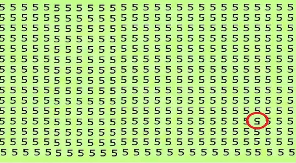 ಆಪ್ಟಿಕಲ್ ಇಲ್ಯೂಷನ್ ರೂಪದಲ್ಲಿರುವ ಈ ಫೋಟೋ ತುಂಬೆಲ್ಲಾ 5 ಈ ಸಂಖ್ಯೆ ಬರದದ್ದು ಕಂಡು ಬರುತ್ತದೆ.. ಆದರೆ ಈ ಸಾಲುಗಳ ಮಧ್ಯೆ ಒಂದು ಸಂಖ್ಯೆ ಅಂದರೆ 5 ಈ ಸಂಖ್ಯೆಯನ್ನು ಉಲ್ಟಾ ಬರೆಯಲಾಗಿದೆ. ಅದು ಎಲ್ಲಿ ಇದೆ ಎಂಬುದು ಕಂಡು ಹಿಡಿಯುವದೇ ನಿಮಗೆ ಚಾಲೆಂಜ್ ಆಗಿದೆ. ಹಾಗಾದರೆ ಈ ಉಲ್ಟಾ 5 ಸಂಖ್ಯೆಯನ್ನು ಹುಡುಕುವ ಪ್ರಯತ್ನ ಶುರು ಮಾಡಿ ಮಿತ್ರರೇ. ಕೇವಲ ಹತ್ತೇ ಹತ್ತು ಸೆಕೆಂಡುಗಳಲ್ಲಿ ಈ ಚಾಲೆಂಜ್ ನೀವು ಪೂರ್ಣ ಮಾಡಬೇಕಾಗಿದೆ. ಅಂದಾಗ ಮಾತ್ರ ಈ ಆಟದಲ್ಲಿ ನೀವು ಗೆದ್ದಂತೆ.