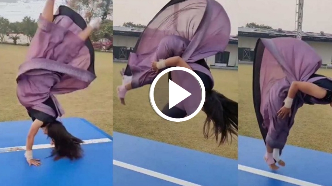 ಈ ಹುಡುಗಿ ಸೀರೆಯ ಮೇಲೆ ಮಾಡಿದ್ದಾಳೆ ‘ಬ್ಯಾಕ್ ಫ್ಲಿಪ್’: ನೋಡಿ ವೈರಲ್ ವಿಡಿಯೋ….!!
