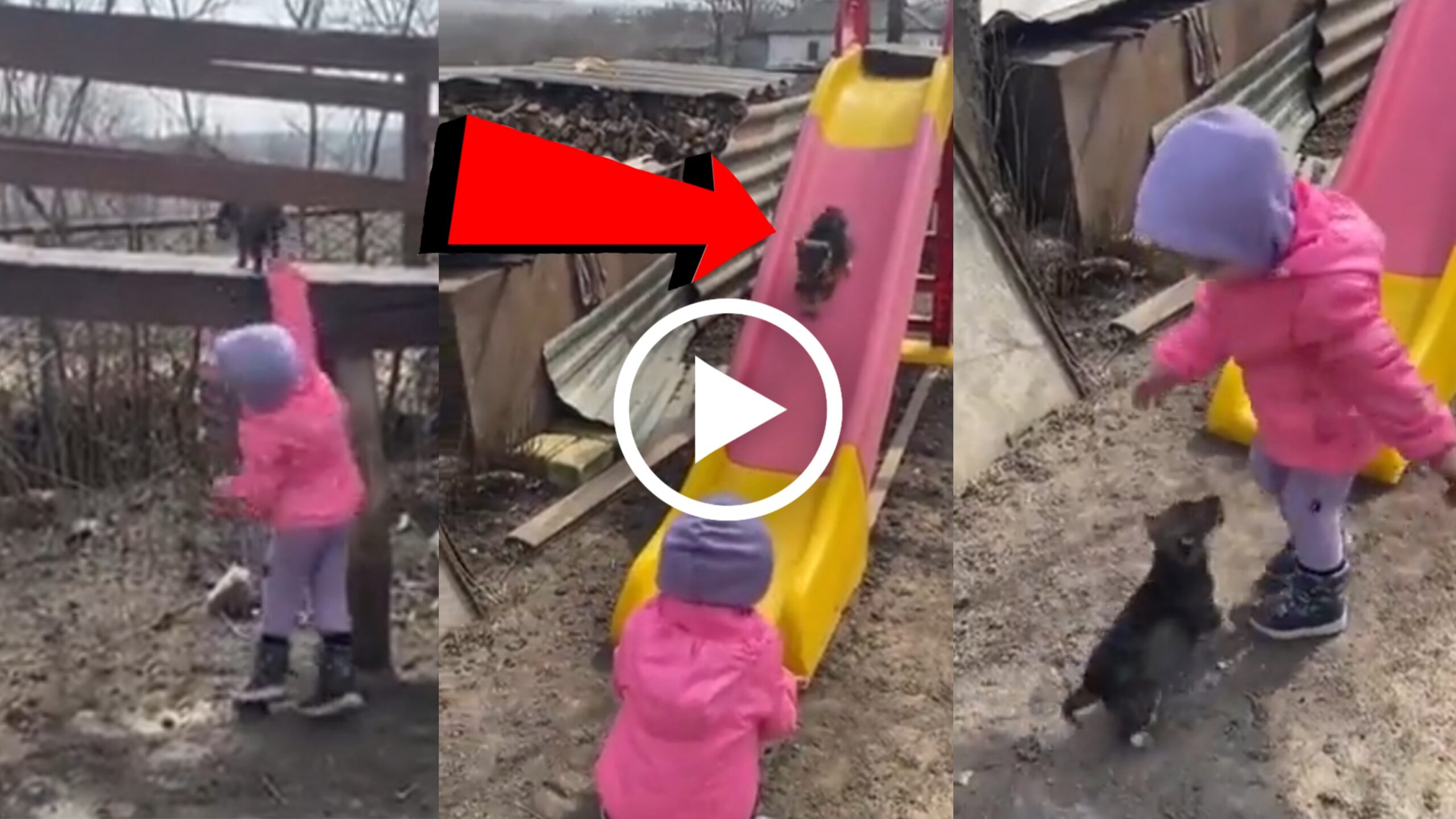 ವಿಡಿಯೋದಲ್ಲಿ ಎರಡು ಪುಟ್ಟ ಜೀವಗಳು ಗಾರ್ಡನ್ ಒಂದರ ಸ್ಲೈಡಿಂಗ್ ಹತ್ತಿರ ಆಡುತ್ತಿವೆ. ಆಟ ಆಡುವಾಗ ಪುಟ್ಟ ಮಗು ನಾಯಿಯ ಪುಟ್ಟ ಮರಿಗೆ ನಿಲುಕದಿದ್ದರೂ ಕಾಲುಗಳನ್ನು ಎತ್ತರಿಸಿ ಪ್ರಯತ್ನ ಮಾಡಿ ಸ್ಲೈಡಿಂಗ್ ಬೋರ್ಡ್ ಮೇಲೆ ಕುಳ್ಳಿರಿಸುತ್ತಾನೆ. ತದನಂತರ ಪುಟ್ಟ ನಾಯಿಮರಿಯು ಸ್ಲೈಡಿಂಗ್ ಮೇಲಿಂದ ತುಂಬಾ ಚೆನ್ನಾಗಿ ಖುಷಿಯಿಂದ ತನ್ನ ಗೆಳಯನಿದ್ದ ಕಡೆಗೆ ಜಾರುತ್ತ ಇಳಿದು ಬರುತ್ತದೆ. ಇಲ್ಲಿ ಗಮನಿಸುವ ಮಹತ್ವದ ವಿಷಯ ಒಂದಿದೆ. ನಾಯಿಯ ಪುಟ್ಟ ಮರಿ ಜಾರುತ್ತ ಸ್ಲೈಡಿಂಗ್ ಮುಖಾಂತರ ಕೆಳಗೆ ಬಂದ ನಂತರ ಮತ್ತೆ ತನ್ನನ್ನು ಎತ್ತಿ ಸ್ಲೈಡಿಂಗ್ ಬೋರ್ಡ್ ಮೇಲೆ ಕೂಡಿಸುವಂತೆ ಪುಟ್ಟನ ಮುಂದೆ ಕುಣಿಯುತ್ತ ಹಠ ಮಾಡುತ್ತದೆ.