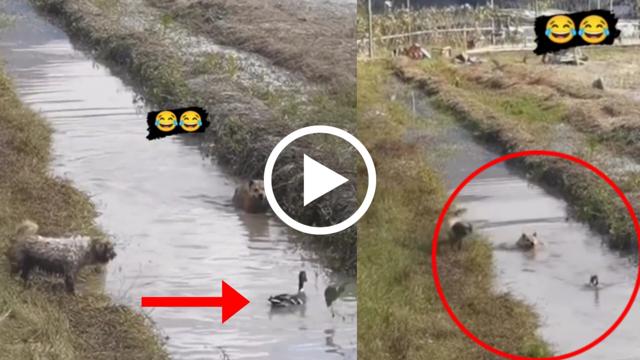 ಎರಡೂ ನಾಯಿಗಳಿಗೆ ಅಕ್ಷರಶಃ ಹುಚ್ಚನಂತೆ ಮಂಗ ಮಾಡಿತು ಬಾತುಕೋಳಿ; ನೋಡಿ ಫುಲ್ ಎಂಜಾಯ್ ನೀಡುವ ವಿಡಿಯೋ…