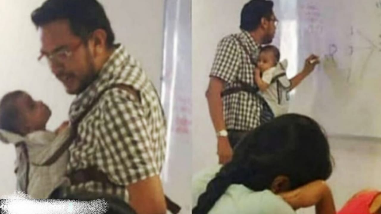 ಕಂಕುಳಲ್ಲಿ ಮಗುವನ್ನು ಎತ್ತಿಕೊಂಡು, ಕಾಲೇಜಿನಲ್ಲಿ ಉಪನ್ಯಾಸ ಮಾಡುವ ತಂದೆ: ಕಾರಣ ತಿಳಿದರೆ ಕಣ್ಣೀರು ಬರುತ್ತದೆ!