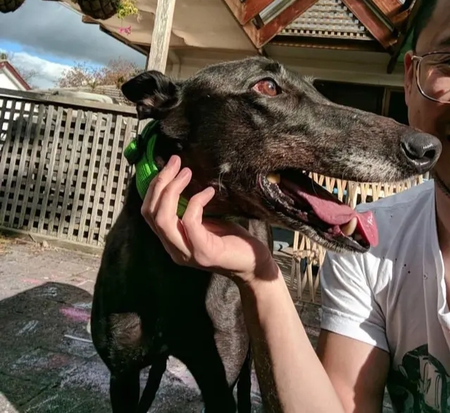 12 ) ನಾಯಿ ಗ್ವಾಗಲ್ ಹಾಕಿಕೊಂಡು ಕುಳಿತಿದೆ.