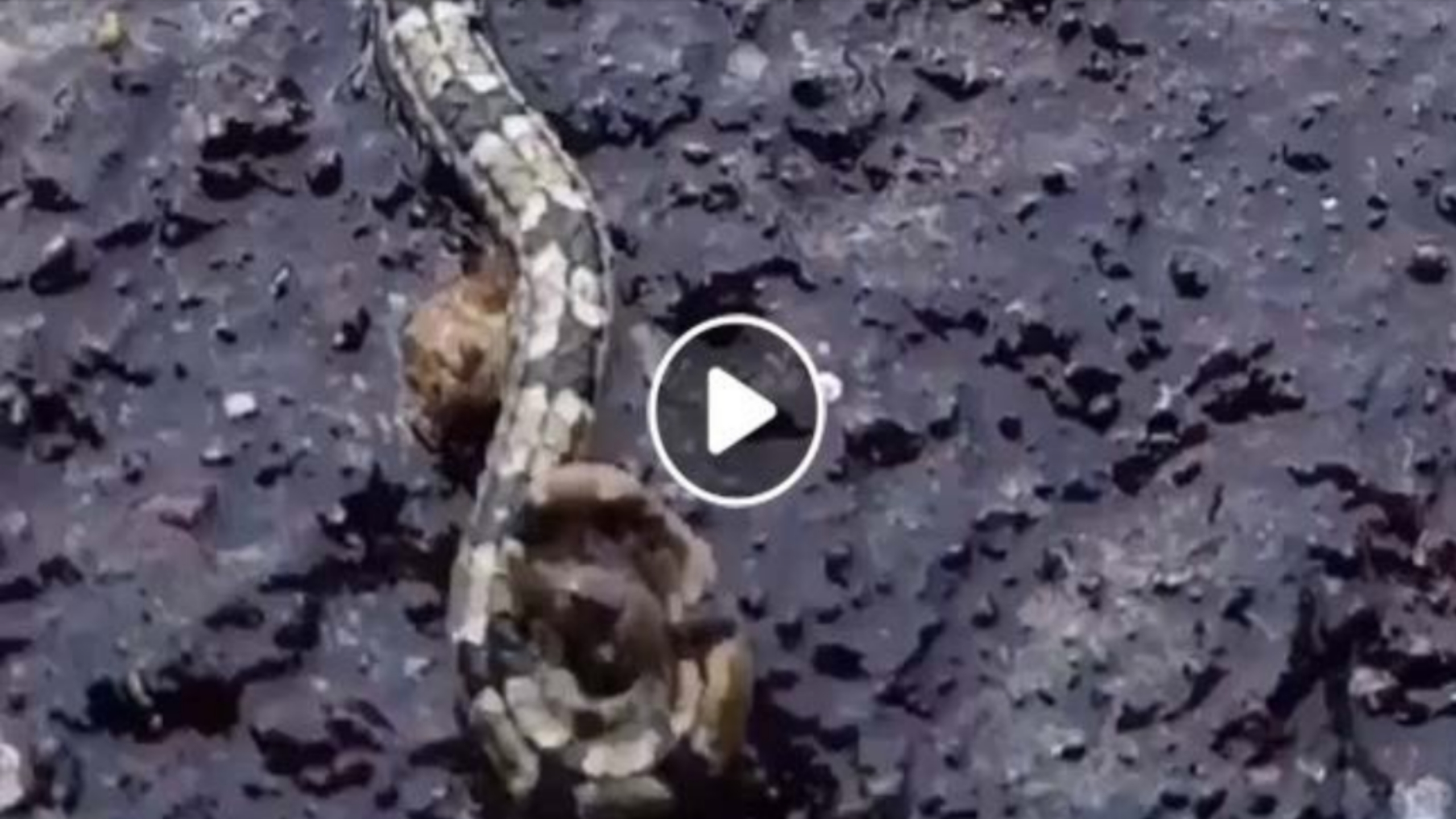 ಕಲ್ಲಿನ ಮೇಲೆ ವಿಚಿತ್ರ ಪ್ರಾಣಿಯೊಂದು ತೇವಳುತ್ತಿತ್ತು, ಜನರು ಹಾವು ಇರಬಹುದೆಂದು ಭಾವಿಸಿದರು; ಆದರೆ ಕೊನೆಗೆ ಗೊತ್ತಾಯಿತು… ನೋಡಿ ಈ ವೈರಲ್ ವಿಡಿಯೋ!