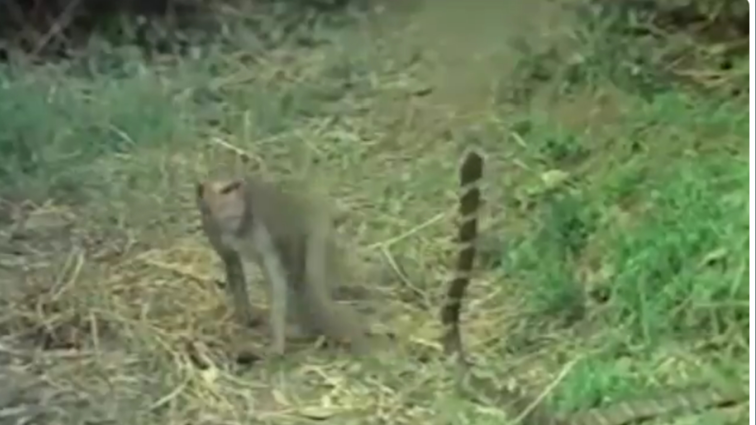 ವಿಡಿಯೋದಲ್ಲಿ ನಾಗರಹಾವಿನ ಮುಂದೆ ಒಂದು ಮಂಗ ಕುಳಿತಿದೆ, ಹಾವು ಮೇಲಿಂದ ಮೇಲೆ ತನ್ನ ಹೆಡೆಯನ್ನು ತೆಗೆದು ಮಂಗಕ್ಕೆ ಕಚ್ಚಬೇಕೆಂದು ಪ್ರಯತ್ನಿಸುತ್ತಿದೆ ಆದರೆ ಅದರ ಪ್ರಯತ್ನ ವಿಫಲವಾಗುತ್ತಿದೆ. ಮಂಗ ಕುಪ್ಪಳಿಸಿ ದೂರ ಹಾರಿ ತಪ್ಪಿಸಿಕೊಳ್ಳುತ್ತಿದೆ.