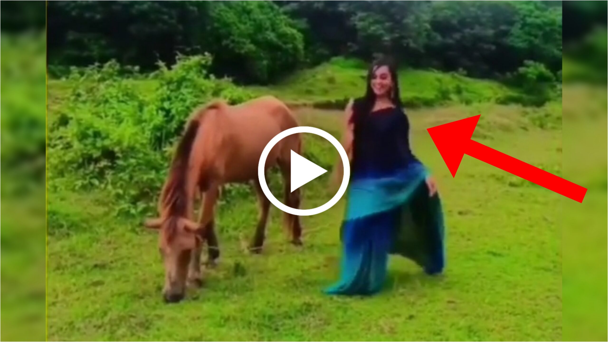 ಡಾನ್ಸ್ ಮಾಡುತ್ತಾ ಮಾಡುತ್ತಾ ಈ ಯುವತಿ ಕುದುರೆಯ ಸಮೀಪ ಹೋಗಿ ಅದರ ಬೆನ್ನ ಮೇಲೆ ಕೈ ಇಟ್ಟಿದ್ದಾಳೆ. ಮೊದಲು ತನ್ನಷ್ಟಕ್ಕೆ ತಾನು ಹುಲ್ಲು ಮೇಯುತ್ತಿರುವ ಕುದುರೆ, ಯುವತಿಯ ಸ್ಪರ್ಶದ ನಂತರ ಅದಕ್ಕೆ ಡಿಸ್ಟರ್ಬ್ ಆಗಿದೆ. ಮೊದಲು ಬಾಯಿಯಿಂದ ಯುವತಿಯ ಮುಖಕ್ಕೆ ಕಚ್ಚಲು ಮುಂದಾಗಿದೆ. ನಂತರ ಕುದುರೆ ಈ ಯುವತಿಗೆ ಸರಿಯಾಗಿಯೇ ಪಾಠ ಕಲಿಸಲು ಮುಂದಾಗಿ ಬ್ಯಾಕ್ ಕಿಕ್ ಕೊಡುವ ಸಲುವಾಗಿ ಪೊಜಿಶನ್ ತೆಗೆದುಕೊಂಡಿದೆ. ಅಷ್ಟರಲ್ಲಿ ಯುವತಿ ಕುಣಿಯುವುದನ್ನು ಬಿಟ್ಟು, ಕ್ಷಣಾರ್ಧದಲ್ಲಿ ಅಲ್ಲಿಂದ ಓಡಿ ಹೋಗಲು ಯಶಸ್ವಿಯಾಗಿದ್ದಾಳೆ. ಈ ದೃಶ್ಯ ನೋಡಿದ ನಂತರ ನಗು ತಡೆಯುವುದಾಗುವುದಿಲ್ಲ.