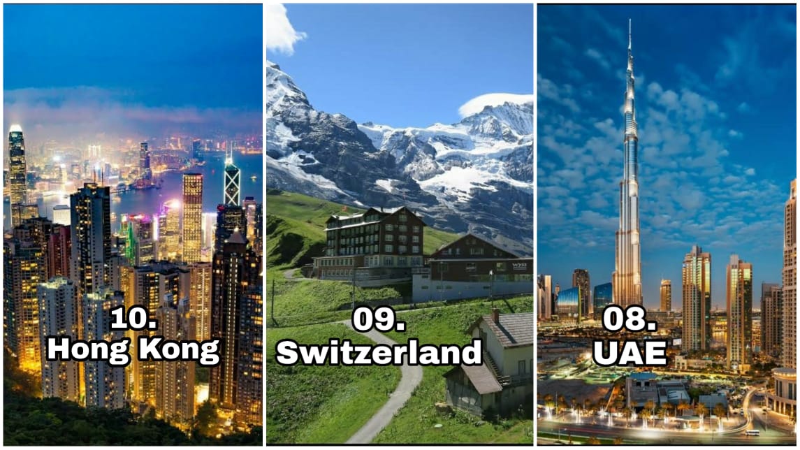 10) ಹತ್ತನೇ ಸ್ಥಾನದಲ್ಲಿರೋ ದೇಶ ಹಾಂಗ್ ಕಾಂಗ್. ಇದು ವಾಸ್ತವವಾಗಿ ಚೀನಾದ ವಿಶೇಷ ಆಡಳಿತ ಪ್ರದೇಶವಾಗಿದೆ. ಇಲ್ಲಿನ ಆಡಳಿತ ಭಾಷೆ ಕೂಡಾ ಚೀನೀ ಮತ್ತು ಇಂಗ್ಲೀಷ್ ಭಾಷೆಗಳಾಗಿವೆ. ಇಲ್ಲಿನ ಪ್ರಮುಖ ಆದಾಯ ಪ್ರವಾಸಿಗರಿಂದ ಬರುತ್ತದೆ.