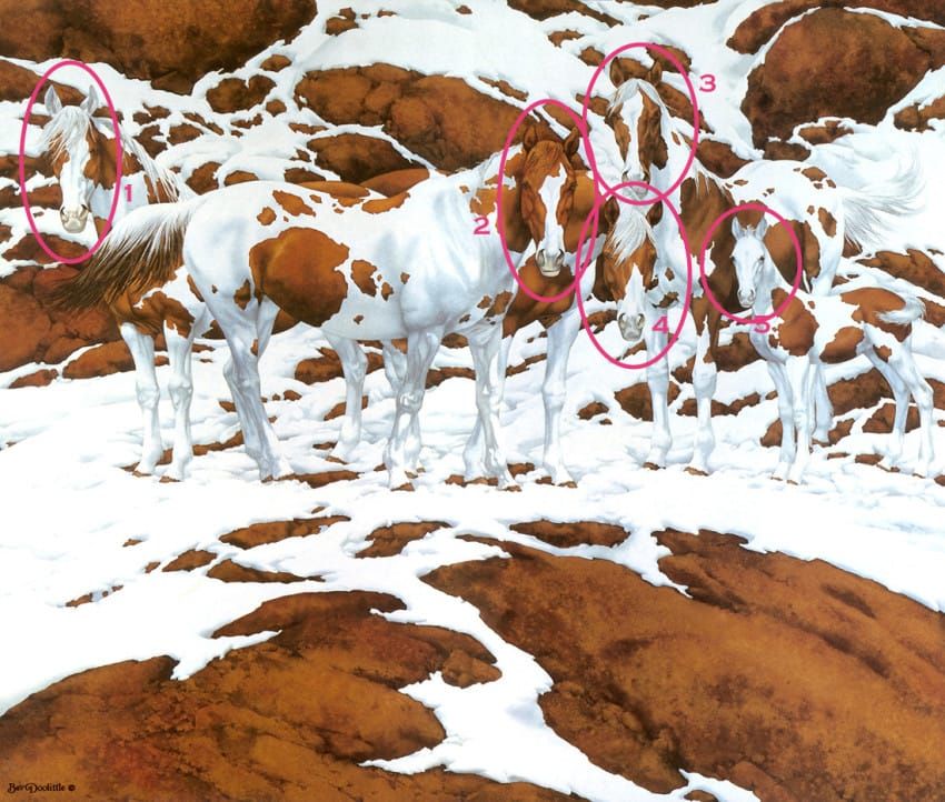 ಪ್ರಸ್ತುತ ಚಿತ್ರದಲ್ಲಿ ಕೆಲವೊಂದು ಕುದುರೆಗಳು ಕಾಣಿಸುತ್ತಿವೆ. ಆ ಕುದುರೆಗಳ ಮೈಬಣ್ಣ ಹಾಗೂ ಕುದುರೆಗಳು ನಿಂತ ಸ್ಥಳದ ಭೂಭಾಗ ಅಥವಾ ಹಿಂಬದಿಯ ಹಿಮಚ್ಚಾದಿತ ಪ್ರದೇಶ ಎರಡೂ ಒಂದೇ ರೀತಿಯದ್ದಾಗಿವೆ. ಹೀಗಾಗಿ ನೋಡುಗರಿಗೆ ಪ್ರಸ್ತುತ ಚಿತ್ರವೂ ತುಂಬಾ ಕನ್ಫ್ಯೂಸ್ ಮಾಡುತ್ತದೆ. ನಿಶ್ಚಿತವಾಗಿಯೂ ಅಲ್ಲಿ ಕುದುರೆಗಳು ಎಷ್ಟಿವೆ ಎಂಬ ಪ್ರಶ್ನೆಗೆ ಉತ್ತರ ಹುಡುಕಬೇಕಾಗಿದೆ. ಹಾಗಾದರೆ ಈ ಚಿತ್ರದಲ್ಲಿ ಒಟ್ಟು ಕುದುರೆಗಳ ಸಂಖ್ಯೆ ಎಷ್ಟಿದೆ ಎಂಬುದು ಹೇಳುತ್ತೀರಾ?