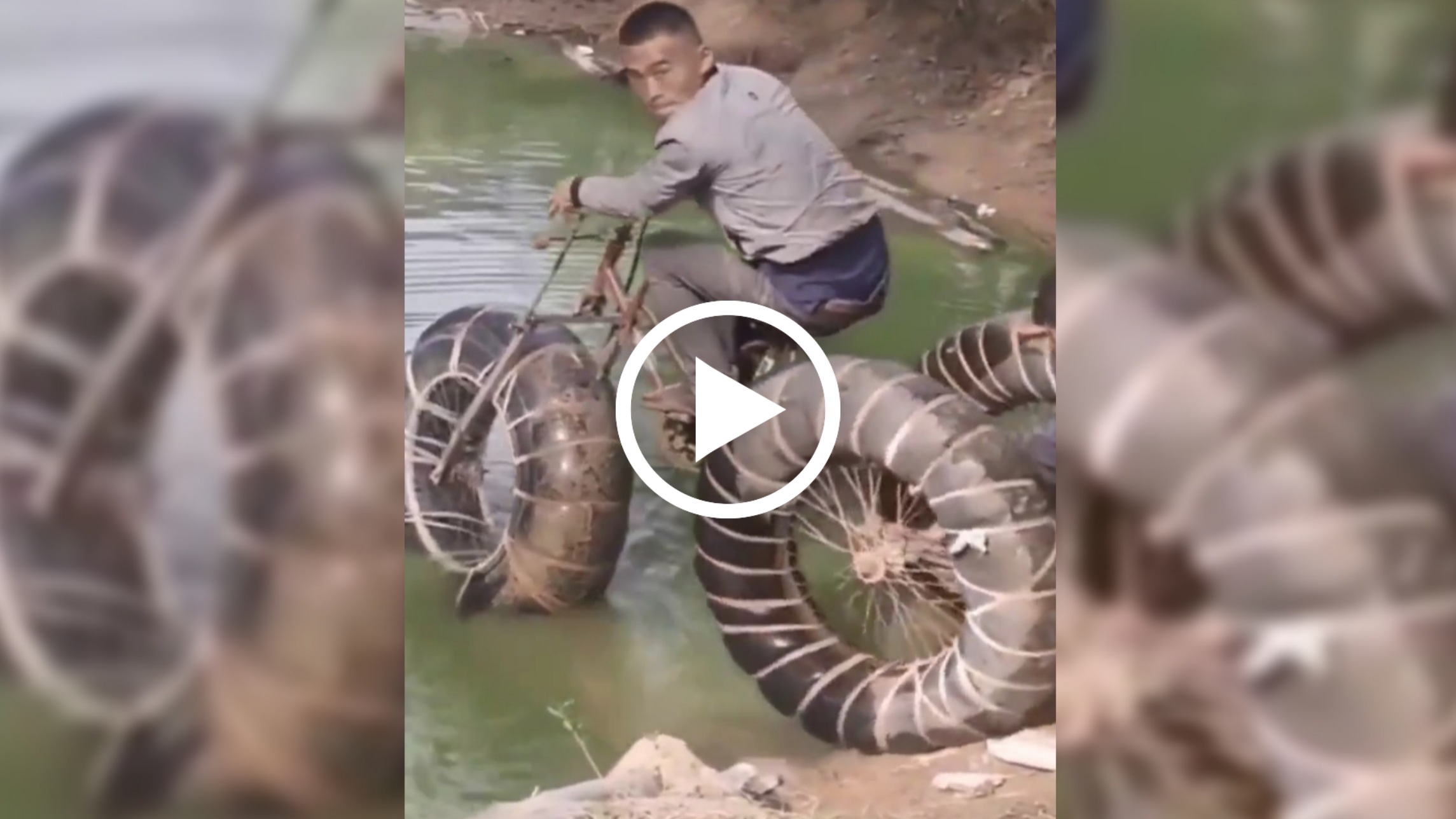 ಇದೇ ರೀತಿಯ ಒಂದು ಐಡಿಯಾ ಹುಡುಕಿದ ವ್ಯಕ್ತಿಯ ವಿಡಿಯೋವೊಂದು ಇಂದು ನಿಮ್ಮ ಮುಂದೆ ತಂದಿದ್ದೇವೆ. ಈ ವಿಡಿಯೋದಲ್ಲಿ ಕಾಣುವಹಾಗೆ ವ್ಯಕ್ತಿಯು ನೀರಿನಲ್ಲಿ ಚಲಿಸುವ ಸೈಕಲ್ ಒಂದನ್ನು ತಯಾರಿಸಿದ್ದಾನೆ. ಈ ಸೈಕಲ್ ಮೂರು ಚಕ್ರ ಹೊಂದಿದೆ. ಚಕ್ರಕ್ಕೆ ಆತ ಮೂರು ದೊಡ್ಡ ದೊಡ್ಡ ಹವೆ ತುಂಬಿದ ಟ್ಯೂಬ್ ಗಳನ್ನು ಕೂಡಿಸಿದ್ದಾನೆ.