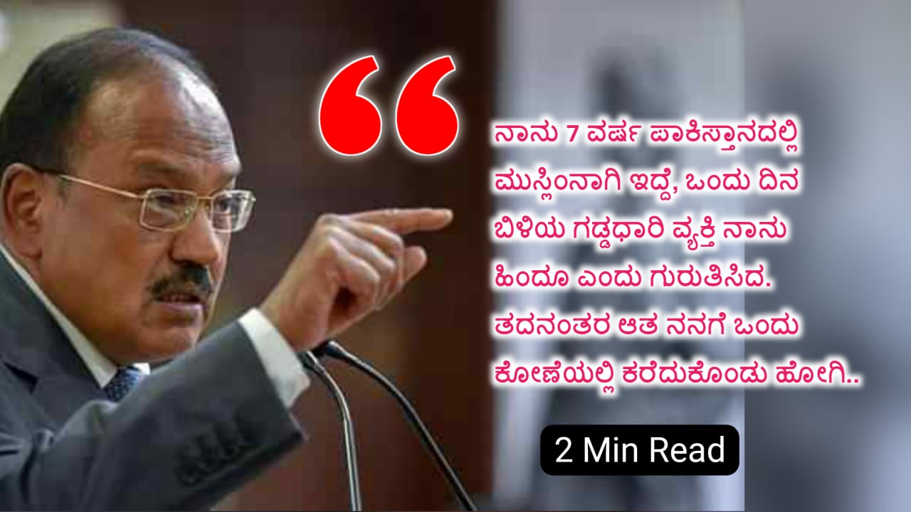 ಸದ್ಯದ ರಾಷ್ಟ್ರೀಯ ಸುರಕ್ಷಾ ಸಲಹೆಗಾರರಾಗಿ ಕೆಲಸ ಮಾಡುತ್ತಿರುವ ಹಾಗೂ ರಿಯಲ್ ಜೇಮ್ಸ್ ಬಾಂಡ್ ಎಂದೇ ಪರಿಚಿತರಾದ ಅಜೀತ್ ಡೋವಲ್ ಅವರ ಅನೇಕ ರೋಚಕ ಕಥೆಗಳನ್ನು ಕೇಳಿರಬಹುದು. ಇವರು ನಮ್ಮ ದೇಶಕ್ಕಾಗಿ ತಾಯಿ ಮಾತೆ ಭಾರತಿಗಾಗಿ ಅನೇಕ ಮಹತ್ವದ ಕೆಲಸಗಳಿಗೆ ತಮ್ಮ ಜೀ ವವನ್ನೇ ಪಣಕ್ಕಿಟ್ಟಿದ್ದಾರೆ.