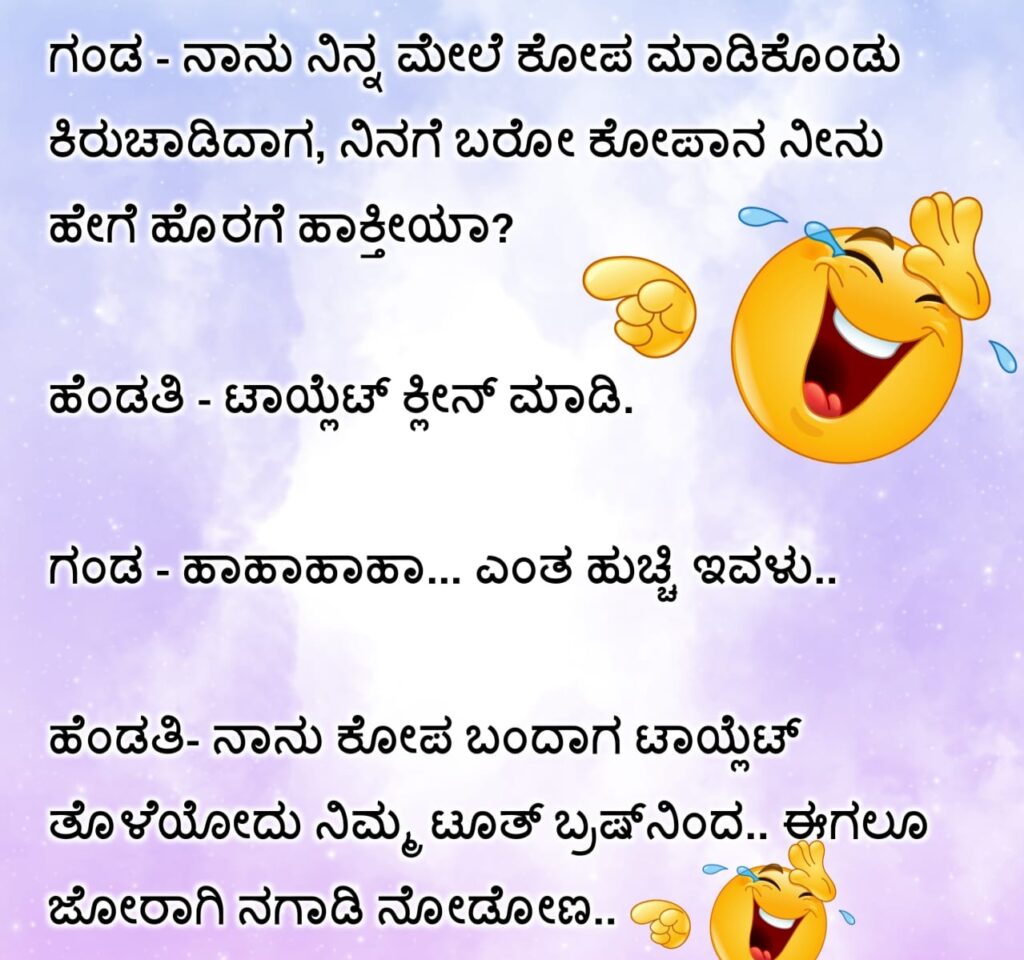ಹೆಂಡತಿ- ನಾನು ಕೋಪ ಬಂದಾಗ ಟಾಯ್ಲೆಟ್ ತೊಳೆಯೋದು ನಿಮ್ಮ ಟೂತ್ ಬ್ರಷ್ನಿಂದ.. ಈಗಲೂ ಜೋರಾಗಿ ನಗಾಡಿ ನೋಡೋಣ..