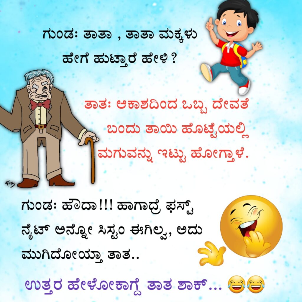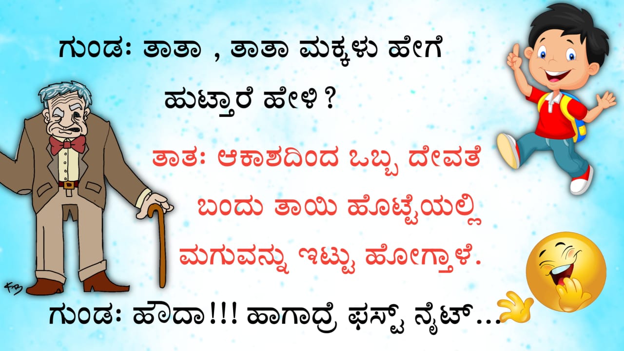 ಫನ್ನಿ ಜೋಕ್ಸ್: ತಾತಾ.. ತಾತಾ.. ಮಕ್ಕಳು ಹೇಗೆ ಹುಟ್ತಾರೆ ಹೇಳಿ.? ತಾತ: ಆಕಾಶದಿಂದ ಒಬ್ಬ ದೇವತೆ…