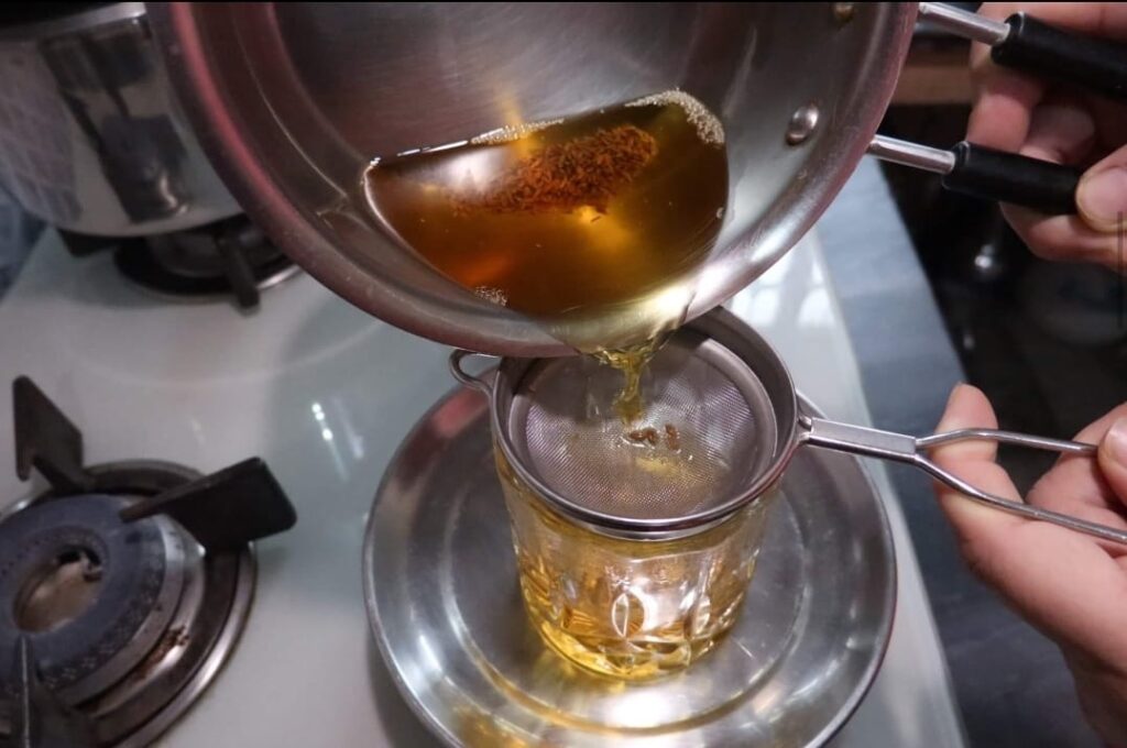 ಈ ರೆಸಿಪಿ ತಯಾರಿಸುವ ಸಲುವಾಗಿ ಮೊದಲು ಗ್ಯಾಸ್ ಮೇಲೆ ಒಂದು ಪಾತ್ರೆಯನ್ನು ಇಟ್ಟು ಅದರಲ್ಲಿ ಒಂದು ಗ್ಲಾಸ್ ನೀರು ಹಾಕಿ ಬೆಚ್ಚಗೆ ಆಗುವವರಿಗೆ ಕಾಯಿಸಿರಿ. ನೀರು ಬೆಚ್ಚಗೆ ಆದನಂತರ ಅದರಲ್ಲಿ ಅರ್ಧ ಚಮಚ ಜೀರಿಗೆ ಸೇರಿಸಿ ಬೇಯಲು ಬಿಡಿ. ಈ ಪ್ರಕ್ರಿಯೆ ಪಾತ್ರೆಯಲ್ಲಿ ನೀರು ಅರ್ಧದಷ್ಟು ಆಗುವವರೆಗೆ ಕುದಿಸಿ. ಸರಿಯಾಗಿ ಕುದಿಸಿದ ನಂತರ ಪಾತ್ರೆಯಲ್ಲಿ ನೀರು ಅರ್ಧದಷ್ಟು ಉಳಿದಾಗ ಪಾತ್ರೆಯನ್ನು ಗ್ಯಾಸ್ ಮೇಲಿಂದ ಇಳಿಸಿ. ಅನಂತರ ಅದರಲ್ಲಿ ಆಪಲ್ ವಿನಿಗರ್ 1 ಚಮಚ ಮಿಕ್ಸ್ ಮಾಡಿ.