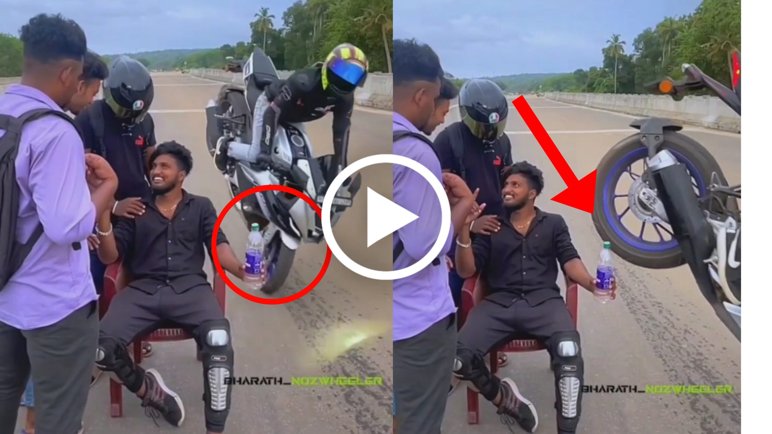 ವಿಡಿಯೋದ ಈ ದೃಶ್ಯದಲ್ಲಿ ಒಬ್ಬ ವ್ಯಕ್ತಿಯು ಕೈಯಲ್ಲಿ ಬಾಟಲ್ ಹಿಡಿದುಕೊಂಡು ಸಹಜವಾಗಿ ಚೇರ್ ಮೇಲೆ ಕುಳಿತಿದ್ದಾನೆ. ಆತನ ಜೊತೆಗೆ ಮಿತ್ರರು ಸಹ ಇದ್ದಾರೆ. ಬೈಕ್ ಸವಾರ ಆತನ ಹಿಂದಿನಿಂದ ಬೈಕ್ ತೆಗೆದುಕೊಂಡು ಹತ್ತಿರ ಬರುತ್ತಲೇ ಸ್ಟಂಟ್ ಮಾಡಿ ಬೈಕಿನ ಹಿಂದಿನ ಚಕ್ರದಿಂದ ಚೇರ್ ಮೇಲೆ ಕುಳಿತ ವ್ಯಕ್ತಿಯ ಕೈಯಲ್ಲಿ ಹಿಡಿದ ಬಾಟಲ್ ನ ಮುಚ್ಚಳವನ್ನು ಓಪನ್ ಮಾಡಲು ಯಶಸ್ವಿಯಾಗಿದ್ದಾನೆ. ನಿಜಕ್ಕೂ ಈ ಸ್ಟಂಟ್ ತುಂಬಾ ಅದ್ಭುತವಾಗಿದೆ, ಜೊತೆಗೆ ಅಪಾಯಕಾರಿಯು ಆಗಿದೆ. ಇಲ್ಲಿ ಬೈಕ್ ಸವಾರನ ಬ್ಯಾಲೆನ್ಸ್ ಸ್ವಲ್ಪೆ ಸ್ವಲ್ಪ ಏರುಪೇರಾಗಿದ್ದರೂ ಆ ಕಥೆಯೇ ಬೇರೆ ಆಗಿರುತ್ತಿತ್ತು. ಈ ದೃಶ್ಯವನ್ನು ಬರೀ ನಿಮಗೆ ತೋರಿಸುವ ಉದ್ದೇಶ ಅಷ್ಟೇ. ದಯವಿಟ್ಟು ಈ ರೀತಿಯ ಪ್ರಯತ್ನ ನೀವು ಮಾಡಬೇಡಿ. ಕಾರಣ ಇವರು ಸತತ ಪ್ರಯತ್ನ ಮತ್ತು ಪ್ರಾಕ್ಟೀಸ್ ನಿಂದ ಹಾಗೂ ವಿಶೇಷವಾದ ತರಬೇತಿಯ ಜೊತೆಗೆ ಅನೇಕ ಮುನ್ನೆಚರಿಕೆಗಳನ್ನು ತೆಗೆದುಕೊಂಡು ಮಾಡುತ್ತಾರೆ.