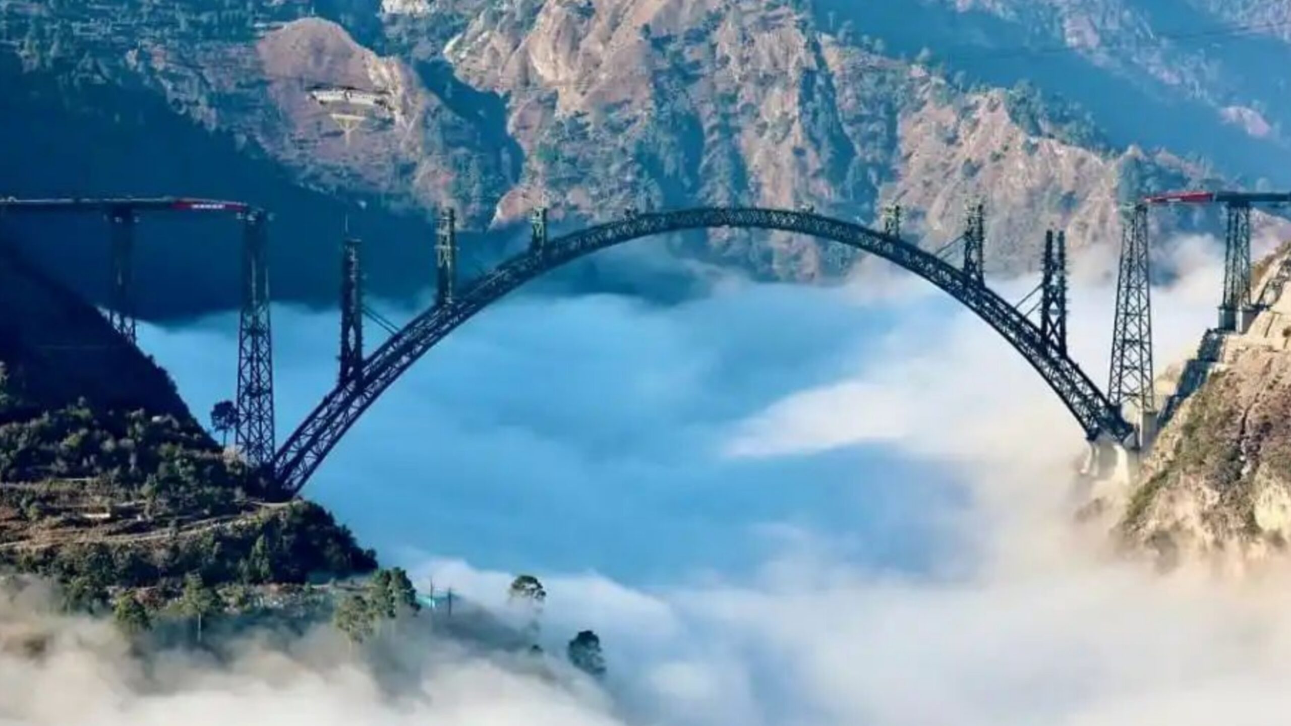 The world's highest #arch #ChenabBridge over the clouds. pic.twitter.com/0fkKFc4Nte