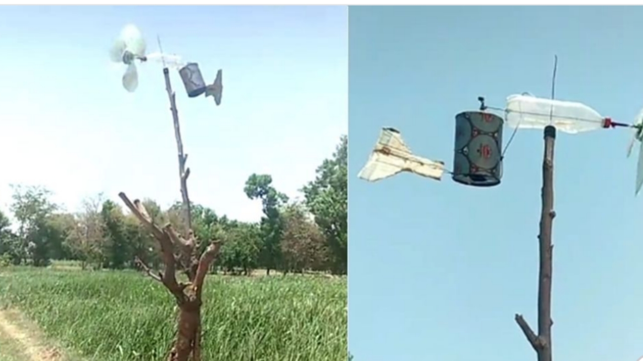 ವಿಡಿಯೋದಲ್ಲಿ ಕಾಣುವ ಹಾಗೆ ಒಂದು ಖಾಲಿ ಬಾಟಲಿಯಿಂದ ಕ್ಯಾನ್ ದಂತಹ ಡಬ್ಬಿಗೆ ಜೋಡಿಸಲಾಗಿದೆ. ಜೊತೆಗೆ ಕೂಲರ್ ನಲ್ಲಿ ಉಪಯೋಗಿಸಲಾಗುವ ಗಾಳಿಯನ್ನು ತೂರುವ (ಬ್ಲೇಡ್) ಎಲೆಗಳನ್ನು ಅಳವಡಿಸಲಾಗಿದೆ. ಗಾಳಿಯಿಂದ ಯಾವಾಗ ಆ ಬ್ಲೇಡುಗಳು ತಿರುಗುತ್ತವೆಯೋ ಆಗ ಹಿಂದೆ ಅಳವಡಿಸಿದ ಕ್ಯಾನ್ ಅಥವಾ ಟೀನ ಡಬ್ಬಿಯಿಂದ ಕಟ್ ಕಟ್ ಶಬ್ದ ಹೊರಹೊಮ್ಮುವದರಿಂದ ಮಿಡತೆಗಳ ಆಕ್ರಮಣ ತಡೆಯುವದು.