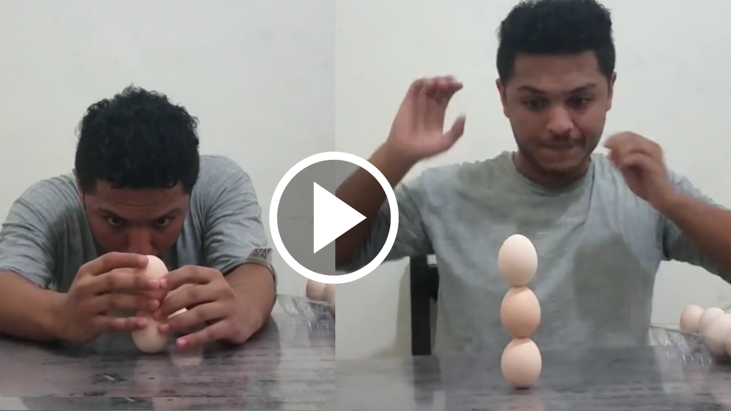 Have you ever seen anything like this before?! ⁣ ⁣ The most eggs stacked is 3 and was achieved by Mohammed Abelhameed Mohammed Muqbel (Yemen), in Kuala Lumpur, Malaysia, on 10 April 2020.⁣ ⁣ ⁣ Mohammed Abelhameed was able to identify each egg's centre of mass and stack them exactly so that the combined centre of mass of the three eggs was situated directly above the very small base of the stack. This required high concentration, patience and practice – do you have what it takes to break the record?! Please don't waste any eggs! 🍳🥚❤️️⁣ —————————————————-⁣ #guinnessworldrecords #eggs #egg #eggstack #records #malaysia #video #cool #food