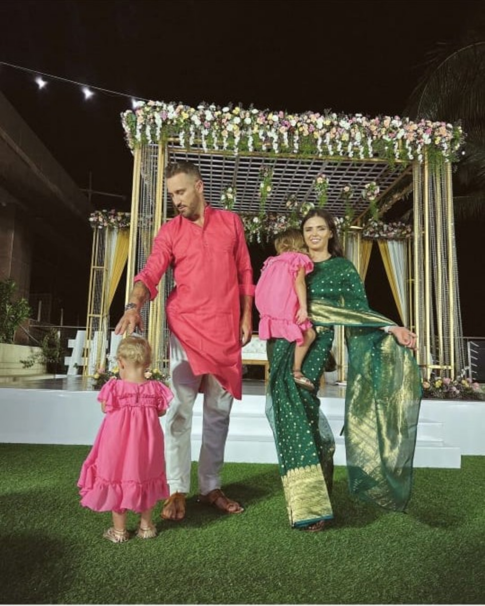 ರಾಯಲ್ ಚಾಲೆಂಜರ್ಸ್ ಬೆಂಗಳೂರು ತಂಡದ ನಾಯಕ ಫಾಫ್ ಡು ಪ್ಲೆಸಿಸ್ ತಮ್ಮ ಕುಟುಂಬದ ಜೊತೆಗೆ ವಿಶೇಷವೆಂದರೆ ಭಾರತೀಯ ಉಡುಗೆ ತೊಡುಗೆಯಲ್ಲಿ ರಿಸೆಪ್ಶನ್ ನಲ್ಲಿ ಶಾಮೀಲಾಗಿದ್ದರು.