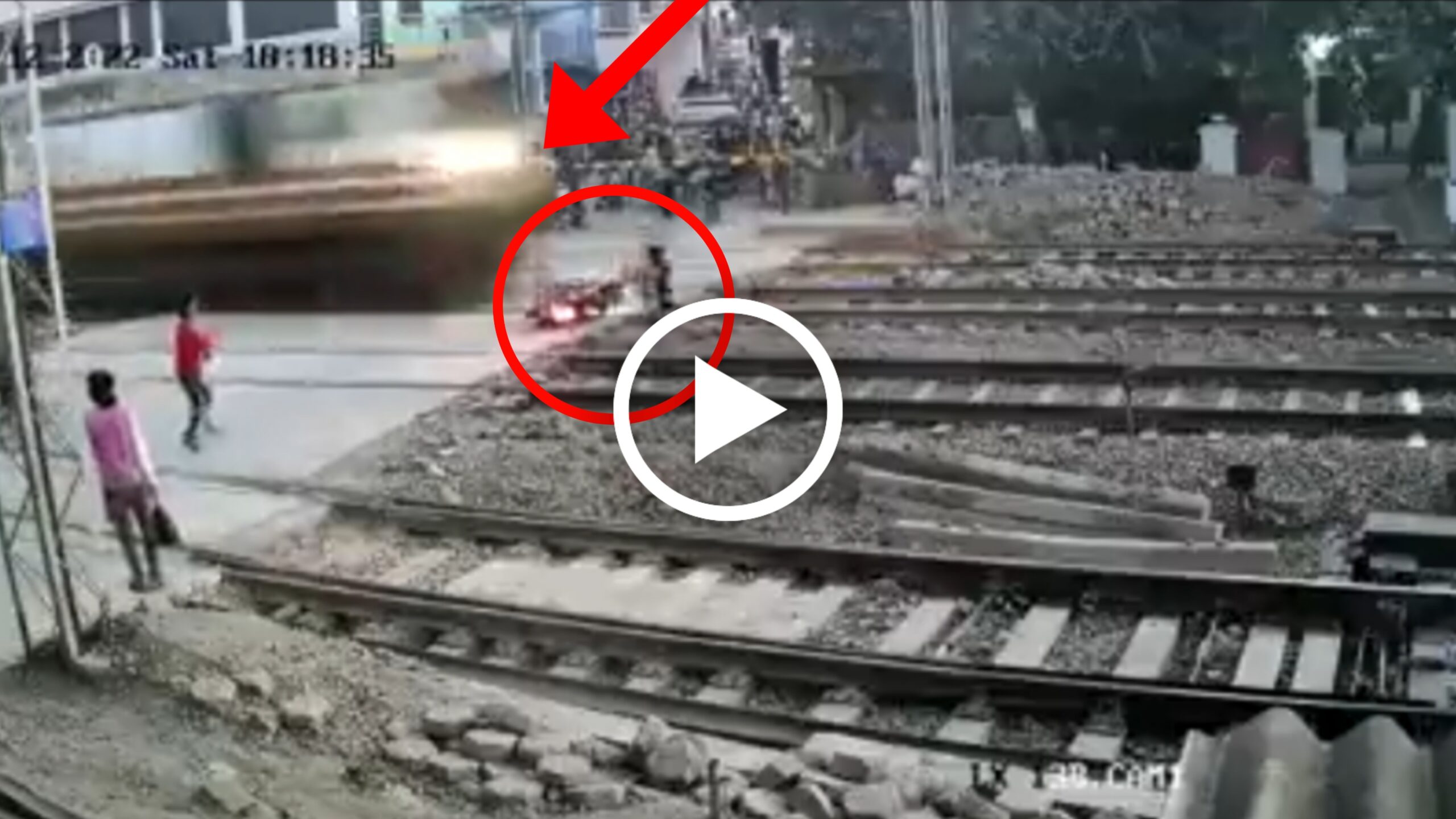 ಶರವೇಗದಲ್ಲಿ ನುಗ್ಗಿ ಬಂದ ರಾಜಧಾನಿ ಎಕ್ಸಪ್ರೆಸ್ ಹೊಡೆತದಿಂದ ಅದೃಷ್ಟವಶಾತ್ ಬದುಕುಳಿದ ಯುವಕನ ರೋಚಕ ವೀಡಿಯೊ ವೈರಲ್! ಬೈಕ್ ಧೂಳಿಪಟ!