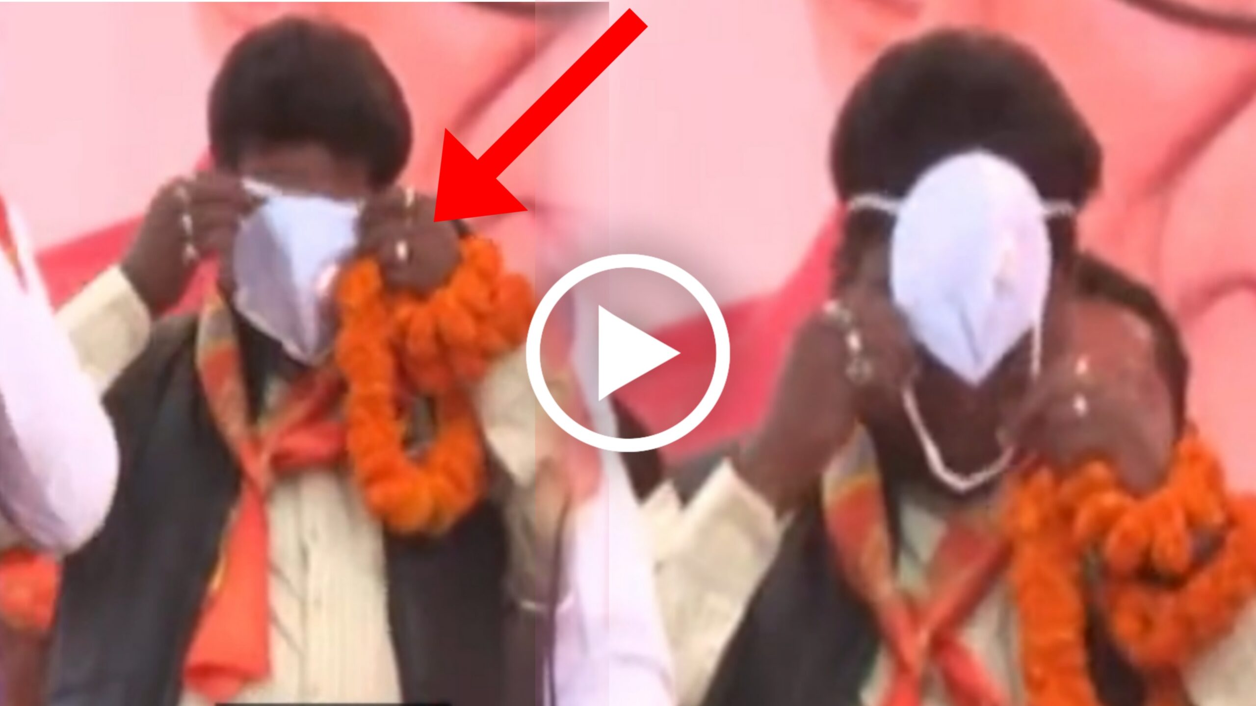 ಕೊರೋನ ಹದ್ದು ಪಾರಾಗಿ ಹೋಗುವ ಸಮಯ ಬಂದರೂ ಇನ್ನು ಕೆಲವರಿಗೆ ಮಾಸ್ಕ್ ತೊಟ್ಟುಕೊಳ್ಳಲು ಬರುತ್ತಿಲ್ಲ ಎಂದರೆ ನಿಜಕ್ಕೂ ಇದು ತಮಾಷೆಯ ಮತ್ತು ನಾಚಿಕೆಗೇಡಿನ ವಿಷಯವೇ ಆಗಿದೆ. ಮಾಸ್ಕ ಇದು ಕೋವಿಡ್ ಪ್ರೋಟೋಕಾಲ್ ನ ಮಹತ್ವದ ಭಾಗವಾಗಿದ್ದರೂ ಕೆಲವರಿಗೆ ಮಾಸ್ಕ್ ತೊಟ್ಟುಕೊಳ್ಳುವುದು ಎಂದರೆ ದೊಡ್ಡ ಕಗ್ಗಂಟಾಗಿ ಹೋಗಿದೆ ಎಂಬುದು ಈ ವಿಡಿಯೋದಲ್ಲಿ ನೋಡಬಹುದು. ಉತ್ತರಪ್ರದೇಶದ ಗೊರಖಪೂರ್ ನಲ್ಲಿ ಶಿವಸೇನೆಯ ಸಭೆಯಲ್ಲಿ ನಾಯಕರು ಸ್ಟೇಜ್ ಮೇಲೆ ಭಾಷಣ ಮಾಡುವುದು ನಡೆದಿತ್ತು. ಅವರ ಬದಿಯಲ್ಲಿ ನಿಂತ ಒಬ್ಬ ಕಾರ್ಯಕರ್ತನು KN 95 ಮಾಸ್ಕ್ ಧರಿಸಿಕೊಳ್ಳುವ ದುರ್ಭರವಾದ ಪ್ರಯತ್ನದ ದೃಶ್ಯ ಕ್ಯಾಮೆರಾದಲ್ಲಿ ಸೆರೆಯಾಗಿದೆ. ಈ ಪ್ರಯತ್ನದಲ್ಲಿ ಆತ ಕೊನೆಗೂ ಯಶಸ್ವಿಯಾಗಿಲ್ಲ. ಆ ಕಾರ್ಯಕರ್ತನು ಮಾಸ್ಕ್ ಹಾಕಿಕೊಳ್ಳಲು ಒದ್ದಾಡುತ್ತಿರುವುದನ್ನು ನೋಡಿ ಕೊನೆಗೆ ಬದಿಗೆ ನಿಂತ ಬೇರೊಬ್ಬ ಕಾರ್ಯಕರ್ತ ಆತನಿಗೆ ಸಹಾಯ ಮಾಡಿದಾಗಲೇ ಮಾಸ್ಕ್ ನ ಗಣಿತ ಬಿಡಿಸಲು ಸುಲಭವಾಯಿತು.
