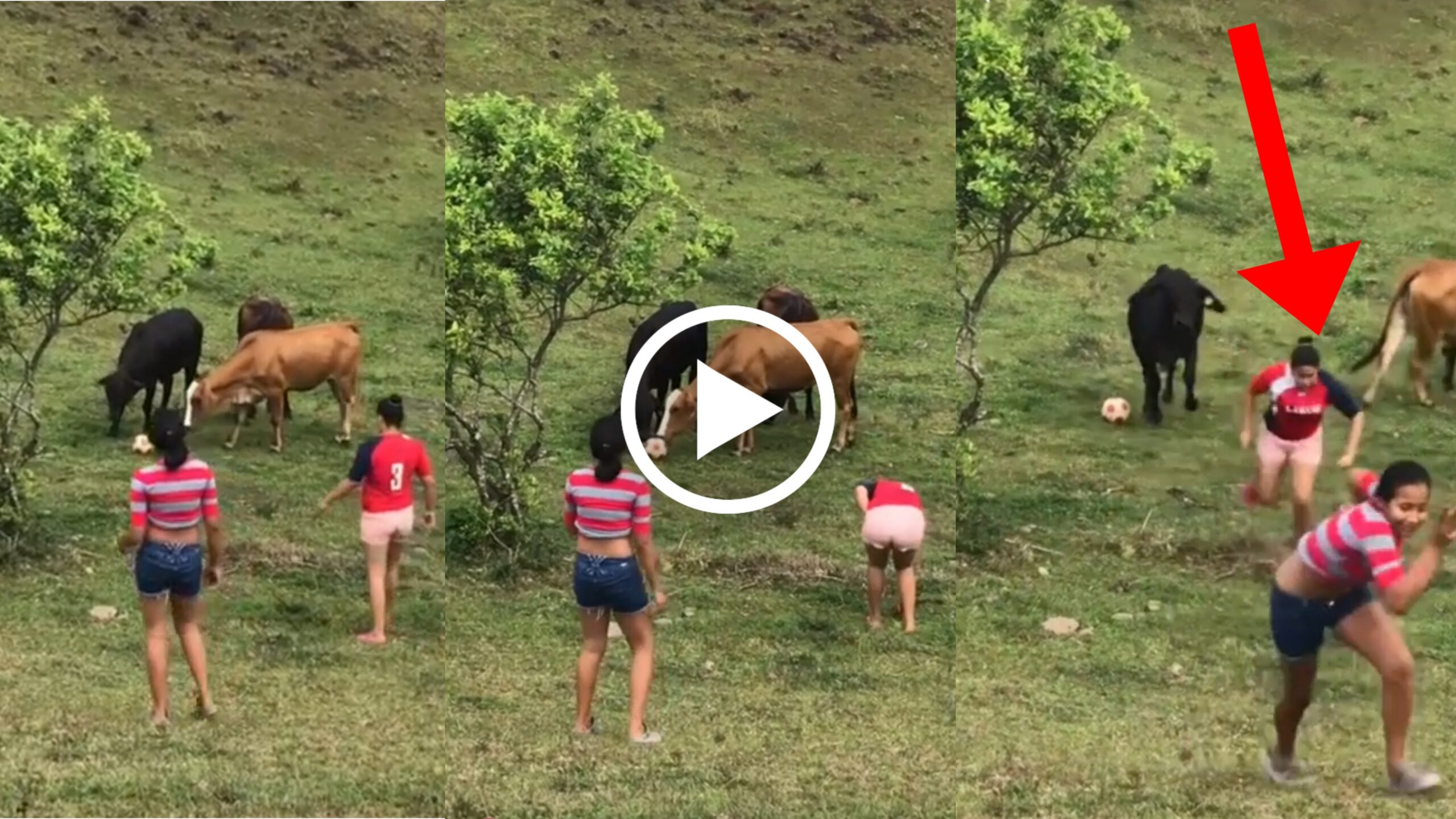 ಸದ್ಯಕ್ಕೆ ಸೋಶಿಯಲ್ ಮಿಡಿಯಾದಲ್ಲಿ ಒಂದು ವಿಡಿಯೋ ತುಂಬಾ ಹರಡುತ್ತಿದೆ. ಈ ವಿಡಿಯೋದಲ್ಲಿ ಇಬ್ಬರು ಯುವತಿಯರು ಹಸುವಿನ ಹಿಂಡು ಇರುವ ಸ್ಥಳದಲ್ಲಿ ತಿರುಗಾಡುವ ಸಲುವಾಗಿ ಹೋಗಿರುತ್ತಾರೆ. ಆಗ ಅಲ್ಲಿ ಬಹಳಷ್ಟು ಹಸುಗಳು ತಮ್ಮಷ್ಟಕ್ಕೆ ತಾವು ಹುಲ್ಲು ಮೆಯುತ್ತ ನಿಂತಿರುತ್ತವೆ. ಯುವತಿಯರು ತಾವು ಸಹ ಈ ಹಚ್ಚು ಹಸಿರು ಪ್ರದೇಶದಲ್ಲಿ ಮೋಜು ಮಸ್ತಿ ಮಾಡಬೇಕೆಂದು ನಿರ್ಧರಿಸಿ ಫುಟ್ಬಾಲ್ ಆಡಲು ನಿಶ್ಚಯ ಮಾಡುತ್ತಾರೆ. ಫುಟ್ಬಾಲ್ ಆಡುತ್ತಿದ್ದಂತೆಯೇ ಆ ಚೆಂಡು ನೇರವಾಗಿ ಹಸುಗಳು ಮೆಯುತ್ತಿದ್ದ ಸ್ಥಳಕ್ಕೆ ಹೋಗುತ್ತದೆ. ಅಲ್ಲಿ ನಮೂರು ಹಸುಗಳು ತಮ್ಮ ಮುಖ ಕೆಳಗಡೆ ಮಾಡಿ ಹುಲ್ಲು ತಿನ್ನುತ್ತಿರುತ್ತವೆ. ಆ ಫುಟ್ಬಾಲ್ ಬಂದದ್ದು ಸಹ ಅವುಗಳಿಗೆ ಗೊತ್ತೇ ಆಗುವದಿಲ್ಲ . ಆದರೆ ಈ ಯುವತಿಯರು ಫುಟ್ಬಾಲ ಮರಳಿ ಹೇಗೆ ತರಬೇಕು ಎಂದು ಯೋಚನೆ ಮಾಡುತ್ತ ಕೊನೆಗೆ ಅವರಲ್ಲಿಯ ಒಬ್ಬ ಯುವತಿ ಧೈರ್ಯ ಮಾಡಿ ಹಸುಗಳ ಕಡೆಗೆ ಸಾವಕಾಶವಾಗಿ ಹೋಗುತ್ತಾಳೆ.