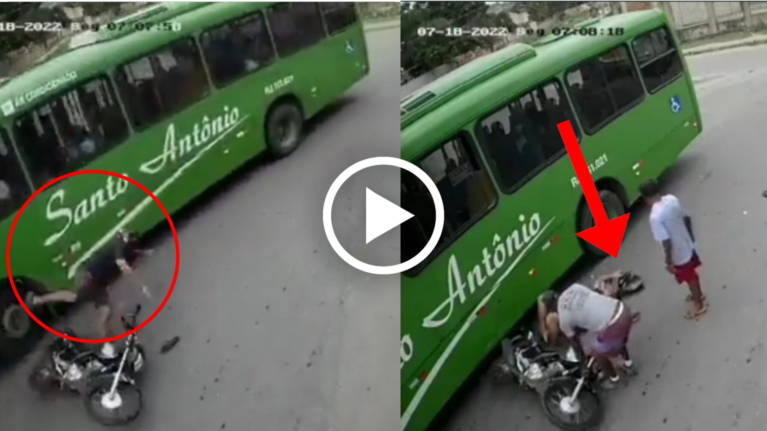 ಪ್ರಸ್ತುತ ವಿಡಿಯೋ ಬೇರೆ ದೇಶದಲ್ಲಿಯದಿದೆ ಎಂದು ತಿಳಿದು ಬರುತ್ತಿದೆ. ವಿಡಿಯೋದಲ್ಲಿ ಕಂಡು ಬರುವ ಹಾಗೆ ರಸ್ತೆಯ ಕಾರ್ನರ್ ಒಂದರಲ್ಲಿ ಹಟಾತ್ತನೆ ಬಸ್ ಬಂದಿದೆ. ಆಗ ಸರಿಯಾಗಿ ಅದೇ ಸಮಯಕ್ಕೆ ದ್ವಿಚಕ್ರ ವಾಹನ ಸವಾರನೊಬ್ಬ ಬಸ್ಸಿನ ಎದುರುಗಡೆಯಿಂದ ಬರುತ್ತಾನೆ. ದ್ವಿಚಕ್ರ ವಾಹನ ಸವಾರನು ಹಟಾತ್ ಬಂದ ಬಸ್ ನೋಡಿ ಬ್ಯಾಲೆನ್ಸ್ ಕಳೆದುಕೊಂಡು ನೇರ ಬಸ್ಸಿನ ಹಿಂದಿನ ಚಕ್ರದಲ್ಲಿ ತಲೆಯೊಂದಿಗೆ ಸಿಕ್ಕಿಬಿದ್ದಿದ್ದಾನೆ. ಆತನ ತಲೆ ಬಸ್ಸಿನ ಚಕ್ರದ ಕೆಳಗಡೆ ಸಿಕ್ಕಿಬಿದ್ದ ನಂತರ ಬಸ್ಸಿನ ಚಕ್ರ ಹಾಗೆಯೇ ಚಲಿಸುತ್ತಾ ಆತನ ತಲೆಯ ಮೇಲೆ ಏರಿದೆ. ಹೀಗಾಗಿ ದ್ವಿಚಕ್ರ ವಾಹನ ಸವಾರನಿಗೆ ತಲೆಯ ಮುಖಾಂತರ ತಳ್ಳುತ್ತಾ ಮುಂದುಗಡೆ ತಂದಿದೆ. ಆ ಸಮಯದಲ್ಲಿ ದ್ವಿಚಕ್ರ ವಾಹನ ಚಾಲಕನ ತಲೆ ಬಸ್ಸಿನ ಚಕ್ರದ ಕೆಳಗೆ ಸಿಕ್ಕಿ ಬಿದ್ದಿತ್ತು. ಬಸ್ ಚಾಲಕ ಕೆಲವೇ ಕ್ಷಣಗಳಲ್ಲಿ ಬಸ್ ಹಿಂದೆ ತೆಗೆದುಕೊಂಡಾಗ ತಲೆ ಚಕ್ರದಿಂದ ಫ್ರೀ ಯಾಗಿದೆ. ಆಗ ವಾಹನ ಚಾಲಕ ತನ್ನಂತಾನೆ ಅಲ್ಲಿಯೇ ಬದಿಗೆ ಸರಿದು ಶಾಕ್ ಆಗಿ ಉರುಳಿದ್ದಾನೆ. ಈ ಘಟನೆಯನ್ನು ನೋಡಿದ ಅಲ್ಲಿದ್ದ ಕೆಲವರು ಒಮ್ಮೆಲೇ ಬಂದು ಆತನಿಗೆ ಸಾಂತ್ವನವನ್ನು ಹೇಳಿ ಅಲ್ಲಿಂದ ಎಬ್ಬಿಸಿದ್ದಾರೆ. ದ್ವಿಚಕ್ರ ವಾಹನ ಚಾಲಕ ನಂತರ ತಾನೇ ಸ್ವತಃ ನಡೆಯುತ್ತಾ ಬದಿಗೆ ಬಂದು ನೀರು ಕುಡಿದಿದ್ದಾನೆ. ಆಗ ಆತ ಯಾವುದೇ ದೊಡ್ಡ ಅಪಾಯವಾಗಿಲ್ಲವೆಂಬುದು ಸ್ಪಷ್ಟವಾಗಿ ತಿಳಿದು ಬರುತ್ತಿತ್ತು.