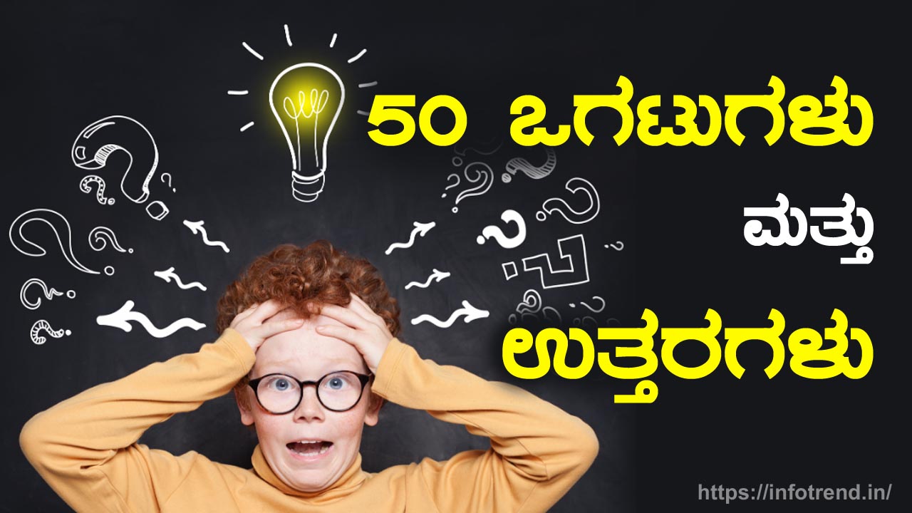 ಒಗಟು ಎಂದರೆ ಒಬ್ಬರು ಮತ್ತೊಬ್ಬರಿಗೆ ಒಡ್ಡಿದ ಸವಾಲು ಅಂತ. ಒಂದು ವಸ್ತುವನ್ನು ಮತ್ತೊಂದು ವಸ್ತುವಿನ ಮೂಲಕ ವಿಭಿನ್ನವಾಗಿ ವರ್ಣಿಸಿ ಆ ವಸ್ತುವನ್ನು ಕಂಡುಹಿಡಿಯುವಂತೆ ಹೇಳುವುದು ಇದರ ಕ್ರಮ. ಒಗಟು ಹೇಳುವವರು ಬಹಳ ಜಾಣ್ಮೆಯಿಂದ ಅದೃಶ್ಯ ವಸ್ತುವಿನ ಹೆಸರನ್ನು ಬಚ್ಚಿಟ್ಟಿರುತ್ತಾನೆ. ಅವರು ಹೇಳಿದ್ದನ್ನು ಅರ್ಥೈಸಿಕೊಂಡು ಅದಕ್ಕೆ ತಕ್ಕನಾದ ಅಥವಾ ಸರಿಯಾದ ಉತ್ತರ ಪತ್ತೆಮಾಡಬೇಕಾಗುತ್ತದೆ, ಇದು ಬುದ್ಧಿಶಕ್ತಿಯ ಪರೀಕ್ಷೆಗೊಂದು ಒಳ್ಳೆಯ ಒರೆಗಲ್ಲು. ಇಂದು ನಾವು ಅಂಥ 50 ಒಗಟುಗಳು ಮತ್ತು ಉತ್ತರಗಳು ನಿಮಗಾಗಿ ತಂದಿದ್ದೇವೆ.
