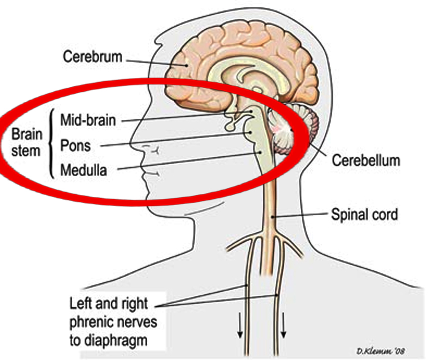 ಈ ಬ್ರೇನ್ ಸ್ಟೆಮ್ ನಲ್ಲಿ ನಮ್ಮ ಉಸಿರಾಟದ ನಿಯಂತ್ರಣ ಕೂಡ ಇರುತ್ತದೆ, ಅ’ಪ’ಘಾ’ತ’ದಲ್ಲಿ ಇಲ್ಲಿ ಪೆಟ್ಟು ಬಿದ್ದಾಗ ಅಲ್ಲಿನ ನರಗಳು ಹಿಸುಕಿದಂತಾಗಿ ದೇಹದ ಅಂಗಗಳಿಗೆ ಸಿಗ್ನಲ್ ಕಳಿಸಲು ವಿಫಲವಾಗುತ್ತದೆ. ಹೀಗಾಗಿ ಒಂದೊಂದೇ ಅಂಗ ಕೆಲಸ ನಿಲ್ಲಿಸುತ್ತಾ ಬರುತ್ತವೆ. ಬ್ರೇನ್ ಸ್ಟೆಮ್ ಡೆ’ಡ್ ಅಂದರೆ ಹೆಚ್ಚು ಕಮ್ಮಿ ಬ್ರೇನ್ ಡೆ’ಡ್ ಅಂದ ಹಾಗೆಯೇ ಅರ್ಥ.