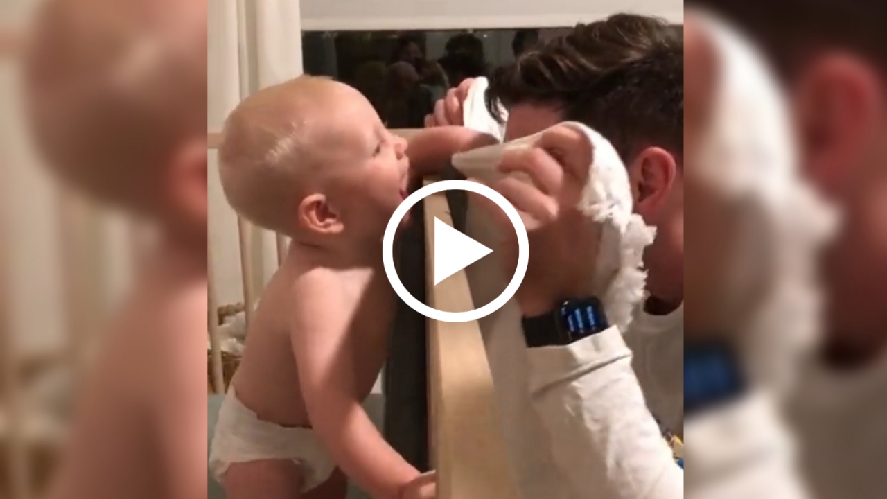 ಈ ಸುಂದರವಾದ ವಿಡಿಯೋದಲ್ಲಿ ಕಂಡುಬರುವ ದೃಶ್ಯ ತುಂಬಾ ವಿಶೇಷವಾಗಿದೆ. ಇಲ್ಲಿ ಮಗು, ಮುಖ ಮುಚ್ಚಿಕೊಂಡು ಬಂದ ತನ್ನ ತಂದೆಯನ್ನು ನೋಡಿದ ಕ್ಷಣ ಚೆನ್ನಾಗಿ ಆಟ ಆಡಲು ಶುರು ಮಾಡುತ್ತಾನೆ. ಇಲ್ಲಿ ನೆನಪಿಸಿಕೊಡಬೇಕಾದ ಒಂದು ವಿಷಯವೇನೆಂದರೆ ಮಗು ಈ ಮೊದಲು ತನ್ನ ತಂದೆಗೆ ಬರೀ ಗಡ್ಡದಿಂದ ತುಂಬಿದ ಮುಖವನ್ನೇ ನೋಡಿದೆ. ಈಗ ತಂದೆ ತನ್ನ ಮಗುವಿನ ಜೊತೆಗೆ ಮುಖ ಮುಚ್ಚಿಕೊಂಡು ಆಟ ಆಡುತ್ತಾ ಆಡುತ್ತಾ ನಂತರ ಮುಖದ ಮೇಲಿನ ವಸ್ತ್ರವನ್ನು ಕೆಳಗೆ ಜಾರಿ ಬಿಡುತ್ತಾನೆ. ಆಗ ನೋಡಿ ಸೂಪರ್ ಕ್ಲೈಮಾಕ್ಸ್. ಮಗು ತಂದೆಯ ಮುಖ ನೋಡಿದ ತಕ್ಷಣವೇ ಒಮ್ಮೆಲೆ ಸ್ತಬ್ಧವಾಗಿಬಿಡುತ್ತದೆ. ನಂತರ ಪ್ರಸ್ತುತ ಎದುರಿನ ವ್ಯಕ್ತಿ ತಂದೆಯಲ್ಲದೆ ಬೇರೆ ಯಾರೋ ಇರಬಹುದೆಂದು ತಿಳಿದು ಹುಳುಹುಳು ಮುಖ ನೋಡಲು ಶುರುಮಾಡುತ್ತದೆ. ಮಗುವಿನ ಮುಖದ ಮೇಲೆ ಆಶ್ಚರ್ಯ ಸ್ಪಷ್ಟವಾಗಿ ಕಂಡು ಬರುತ್ತದೆ. ಕೆಲವೇ ಕ್ಷಣಗಳ ನಂತರ ಮಗು ಮತ್ತೊಂದು ಚಟುವಟಿಕೆಯನ್ನು ಮಾಡುತ್ತದೆ. ಅದೇನೆಂದರೆ, ತಂದೆಯ ಮುಖದ ಮೇಲಿನ ಗಡ್ಡ ಎಲ್ಲಿ ಹೋಯಿತು? ಎಂದು ಪ್ರಶ್ನಾರ್ಥಕವಾಗಿ ಮುಖದ ಮೇಲೆ ಕೈ ಆಡಿಸುತ್ತದೆ. ಈ ಸಂದರ್ಭದಲ್ಲಿ ಮಗು ಒಂದು ಹಂತದಲ್ಲಿ ತುಂಬಾ ಅಳುವ ಪರಿಸ್ಥಿತಿಗೂ ಬಂದಿರುತ್ತೆ.