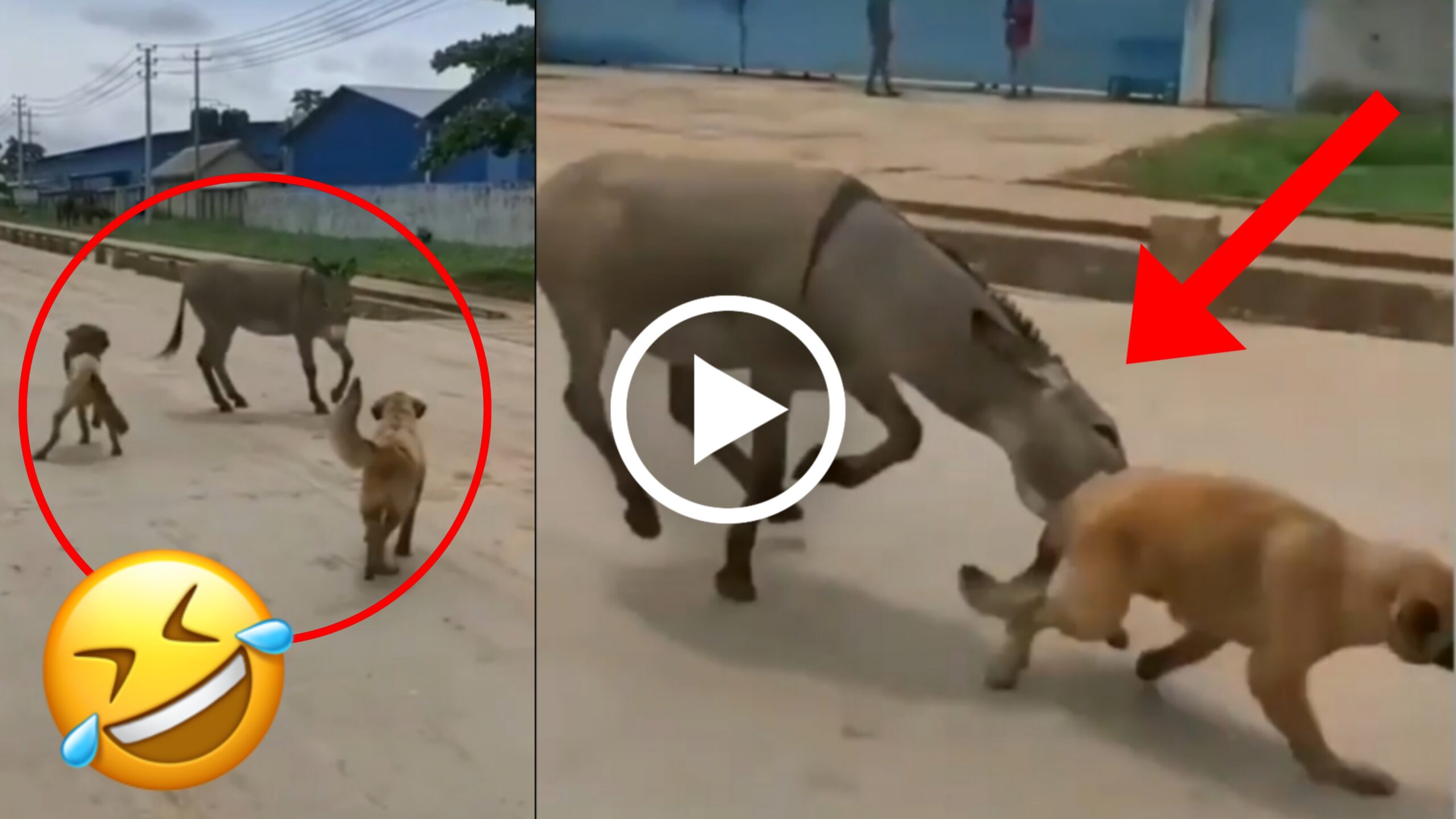 ಎರಡು ನಾಯಿಕೂಡಿ ಕತ್ತೆಗೆ ಕಚ್ಚಲು ಹೋದವು, ಮರಳಿ ನಾಯಿಗಳಿಗೆ ಬೆನ್ನಟ್ಟಿ ಕಚ್ಚಿ ಓಡಿಸಿದ ಕತ್ತೆ!!