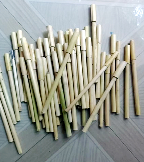 ಪರಿಸರ ಸ್ನೇಹಿ ಪೆನ್ ತಯಾರು ಮಾಡುವ ಉದ್ದೇಶದಿಂದ ಒಂದು ಲೋಹದ ರಾಡ್ ಮತ್ತು ಅಳತೆ ಮಾಪಕವನ್ನು ಬಳಸಿಕೊಂಡಿದ್ದರು ಎನ್ನಲಾಗಿದ್ದು, ಅದಕ್ಕೆ ಜೋಳದ ಹೊಟ್ಟನ್ನು ಆ ರಾಡ್ ಗೆ ಸುತ್ತಿ ಇಡುತ್ತಿದ್ದರು. ನಿರ್ದಿಷ್ಟ ಅವಧಿಯ ನಂತರ ರಾಡನ್ನು ತೆಗೆದ ನಂತರ ಜೋಳದ ಹೊಟ್ಟು ಸಿಲಿಂಡ್ರಿಕಲ್ ಆಕಾರದಲ್ಲಿ ಇರುತ್ತಿತ್ತು.