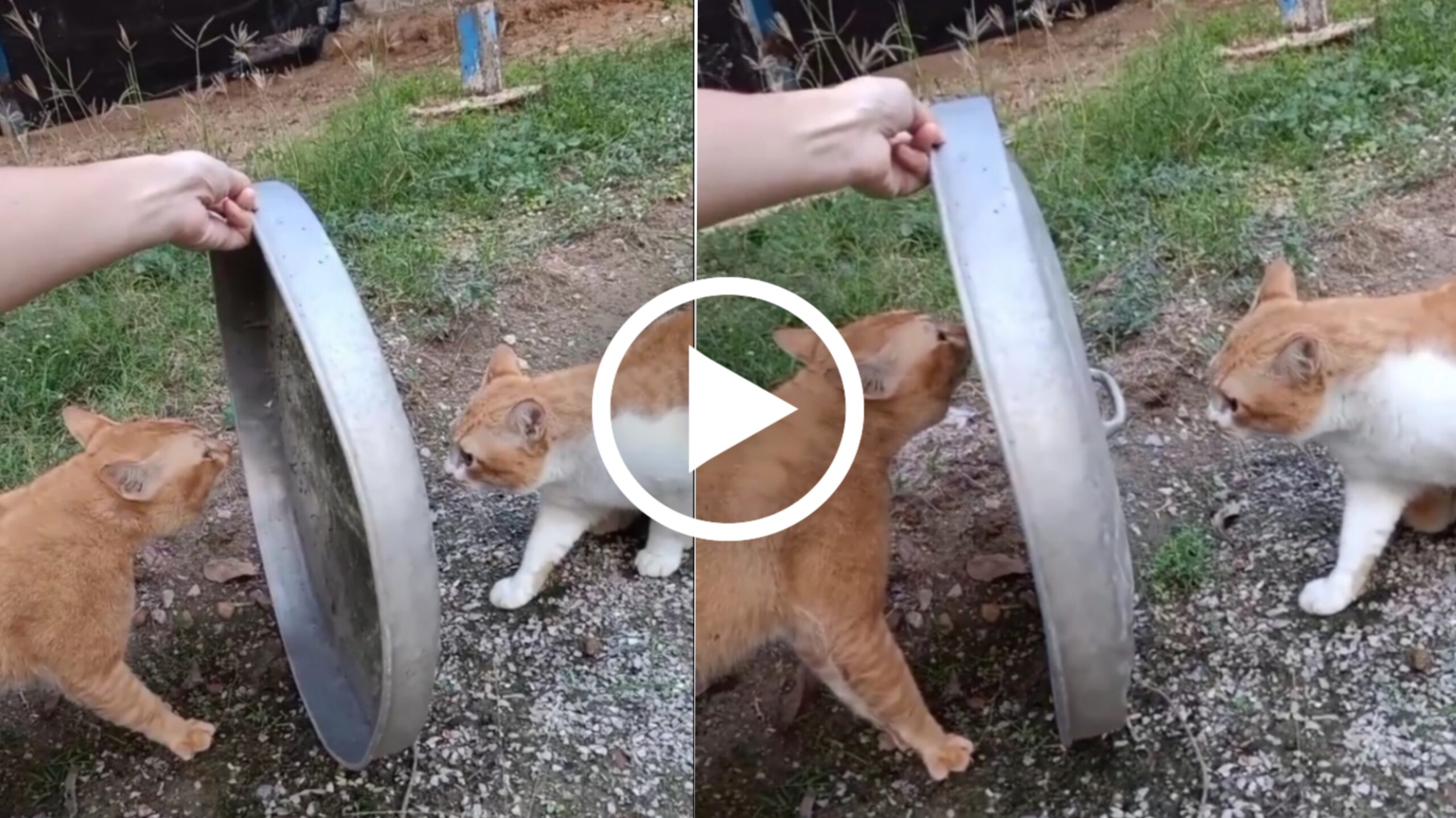 ಈ ವೈರಲ್ ಆಗುತ್ತಿರುವ ವಿಡಿಯೋದಲ್ಲಿ ನೀವು ನೋಡಬಹುದು, ಎರಡು ಬೆಕ್ಕುಗಳ ಆಕಸ್ಮಿಕವಾಗಿ ಭೇಟಿಯಾದಾಗ ತುಂಬಾ ಸಿಟ್ಟಿಗೆ ಬಂದು ಜಗಳ ವಾಡುವ ಪರಸ್ಥಿತಿಯಲ್ಲಿರುತ್ತದೆ ಆಗ ಅಲ್ಲಿದ್ದ ಒಬ್ಬ ವ್ಯಕ್ತಿ ಅವೆರಡೂ ಬೆಕ್ಕುಗಳ ಮದ್ಯದಲ್ಲಿ ಒಂದು ದೊಡ್ಡದಾದ ಡಬ್ಬಿಯ ಮುಚ್ಚಳಿಕೆಯಿಂದ ಒಂದು ಬೆಕ್ಕು ಮತ್ತೊಂದು ಬೆಕ್ಕಿಗೆ ಕಾಣಿಸದ ಹಾಗೆ ಮರೆ ಮಾಡುತ್ತಾನೆ. ಆಗ ಎರಡು ಬೆಕ್ಕುಗಳು ಧ್ವನಿ ಮಾಡದೆ ಸುಮ್ಮನೆ ಇರುತ್ತವೆ. ಆಗ ಈ ವ್ಯಕ್ತಿ ಮತ್ತೆ ಮದ್ಯದಲ್ಲಿಂದ ಮುಚ್ಚಳಿಕೆ ತಗೆದಾಗ ಮತ್ತೆ ಒಂದಕ್ಕೊಂದು ರೇಗಾಡಲು ಶುರು ಮಾಡುತ್ತವೆ. ಈ ವ್ಯಕ್ತಿ ಪದೇ ಪದೇ ಅದೇ ಕ್ರಿಯೆ ರಿಪೀಟ್ ಮಾಡುತ್ತಾನೆ ಬೆಕ್ಕುಗಳು ಸಹ ಅವುಗಳ ಕ್ರಿಯೆ ಸಹ ರಿಪೀಟ್ ಮಾಡುತ್ತವೆ. ಈ ವಿಡಿಯೋ ನೋಡಿದರೆ ನೀವು ನಗದೆ ಇರಲಾರಿರಿ.