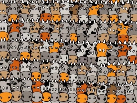 ಪ್ರಸ್ತುತ ಚಿತ್ರ ತುಂಬಾ ಕನ್ಫ್ಯೂಸ್ ನಿಂದ ಕೂಡಿದೆ. ಚಿತ್ರದ ತುಂಬಾ ಬರೀ ಹಸುಗಳೇ ಕಾಣಿಸುತ್ತಿವೆ. ಆದರೆ ಈ ಹಸುಗಳ ಮಧ್ಯೆ ನಾಯಿಯೊಂದು ಅವಿತು ಕುಳಿತಿದೆ. ಆ ನಾಯಿಯು 90 ಪ್ರತಿಶತ ನೆಟ್ಟಿಗರಿಗೆ ಎಲ್ಲಿದೆ ಎಂಬುದೇ ಗೊತ್ತಾಗುತ್ತಿಲ್ಲ. ಹಸುಗಳ ಮಧ್ಯೆ ಅಡಗಿ ಕುಳಿತ ನಾಯಿಯನ್ನು ನಿಮ್ಮ ಕಣ್ಣುಗಳು ಶೋಧಿಸಿ ಅದು ಎಲ್ಲಿದೆ ಎಂದು ಪತ್ತೆ ಹಚ್ಚಬೇಕಾಗಿದೆ. ಈ ಚಾಲೆಂಜಿನಲ್ಲಿ ನೀವು ಗೆಲ್ಲಬೇಕಾದರೆ ನಿಮ್ಮ ಹತ್ತಿರ ಮುಖ್ಯವಾಗಿ ಇರಬೇಕಾಗಿರುವುದು ಪೇಶನ್ಸ್. ಕಾರಣ ಈ ಆಟದಲ್ಲಿ ವಿಜಯ ಸಾಧಿಸಲು ಎಲ್ಲಕ್ಕೂ ಮುಖ್ಯವಾಗಿ ಬೇಕಾಗಿರುವುದು ಸಂಯಮ. ತದನಂತರ ತುಂಬಾ ಸೂಕ್ಷ್ಮತೆಯನ್ನು ಹುಡುಕುವ ತೀಕ್ಷ್ಣ ಕಣ್ಣುಗಳು.
