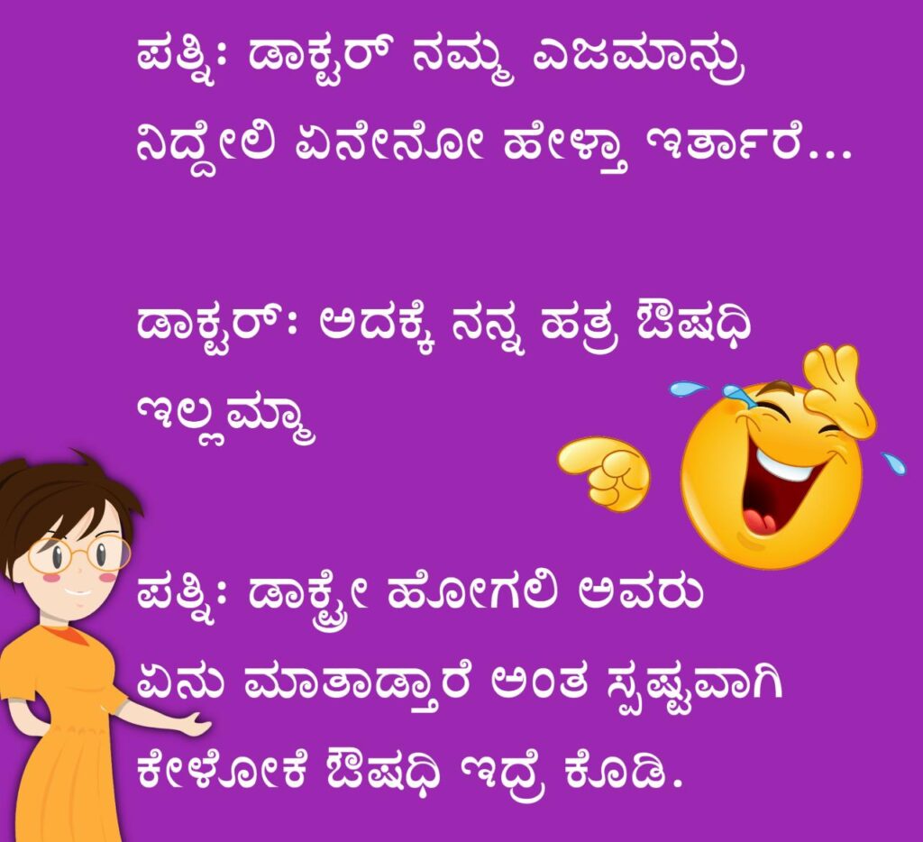 ನಮಸ್ಕಾರ ಗೆಳೆಯರೇ, ಇಂದು ನಾವು ನಿಮಗಾಗಿ ಅಂತರ್ಜಾಲದಲ್ಲಿ ಜನಪ್ರಿಯವಾದ ಕೆಲವು ನಗೆ ಹನಿಗಳನ್ನು ನಿಮಗಾಗಿ ತಂದಿದ್ದೇವೆ. ಈ ಜೋಕ್‌ ಗಳು ನಿಮ್ಮ ನಿತ್ಯ ಜೀವನದ ಎಲ್ಲಾ ಉದ್ವೇಗವನ್ನು, ಒತ್ತಡವನ್ನು ನಿವಾರಣೆ ಮಾಡಿ ನಿಮ್ಮಲ್ಲಿ ಒಂದು ಉಲ್ಲಾಸವನ್ನು ಮೂಡಿಸುತ್ತದೆ. ನಗು ನಿಮಗೆ ಹಾಗೂ ನಿಮ್ಮ ಆರೋಗ್ಯಕ್ಕೆ ಕೂಡಾ ಬಹಳ ಒಳ್ಳೆಯದು ಮಾತ್ರವೇ ಅಲ್ಲದೇ ಒಂದು ಉಲ್ಲಾಸವನ್ನು ನೀಡುತ್ತದೆ. ಆದ್ದರಿಂದ ಇನ್ನು ವಿಳಂಬ ಯಾಕೆ? ನಗುವ ಈ ಆನಂದದಾಯಕ ಪ್ರಕ್ರಿಯೆಯನ್ನು ಪ್ರಾರಂಭಿಸೋಣ ಬನ್ನಿ.