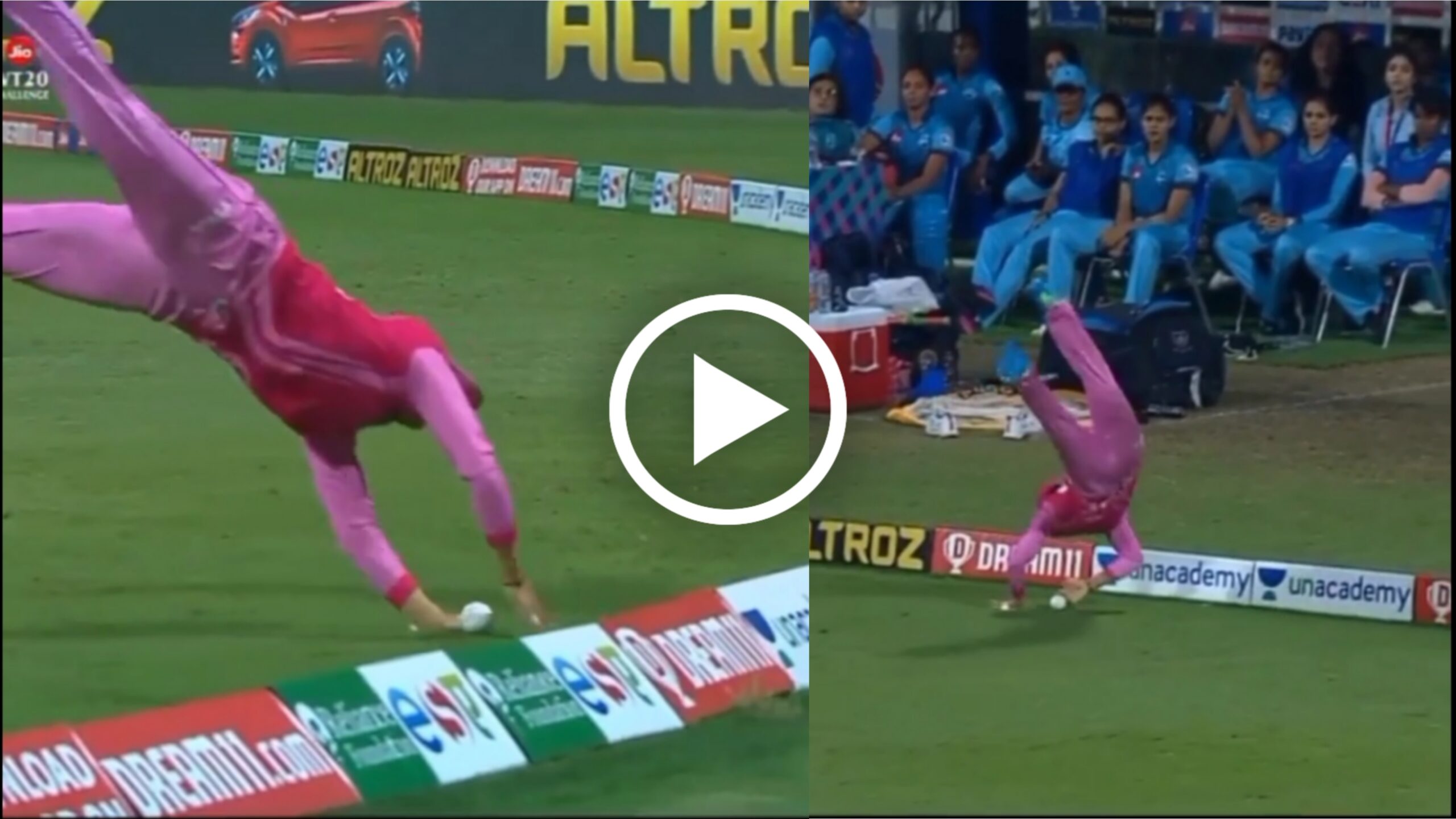 Video; ಜಿಂಕೆಯಂತೆ ಜಂಪ್ ಮಾಡಿ ಬೌಂಡರಿ ದಾಟುವ ಮುನ್ನವೇ ಬಾಲ್ ಗೆ ಅದ್ಭುತ ಫೀಲ್ಡಿಂಗ್ ಮಾಡಿ ಕಡಿವಾಣ ಹಾಕಿದ ಯುವತಿ.