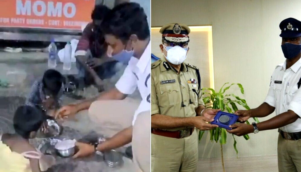 ಆ ಪೊಲೀಸರ ಹೆಸರು ಎಸ್.ಮಹೇಶ್ ಅಂತ, ಹೈದ್ರಾಬಾದ್ ನವರು. ಕೊರೋನ ಹಾಗೂ ಲಾಕ್ ಡೌನ್ ಕಾರಣಕ್ಕೆ ಅಲ್ಲಿನ ಬೀದಿ ಬದಿಯಲ್ಲಿ ಹಸಿವಿನಿಂದ ಕಂಗಾಲಾಗಿದ್ದ ಕುಟುಂಬವೊಂದರ ಮಕ್ಕಳಿಗೆ ಅವರು ತಮ್ಮ ಮನೆಯಿಂದ ತಂದ ಊಟವನ್ನೇ ಬಡಿಸಿದರು. ಅದು ಪ್ರಚಾರಕ್ಕೆ ಎಲ್ಲಿಂದಲೋ ತಂದ ಊಟವಲ್ಲ ಎಂಬುದನ್ನು ಗಮನಿಸಿ.