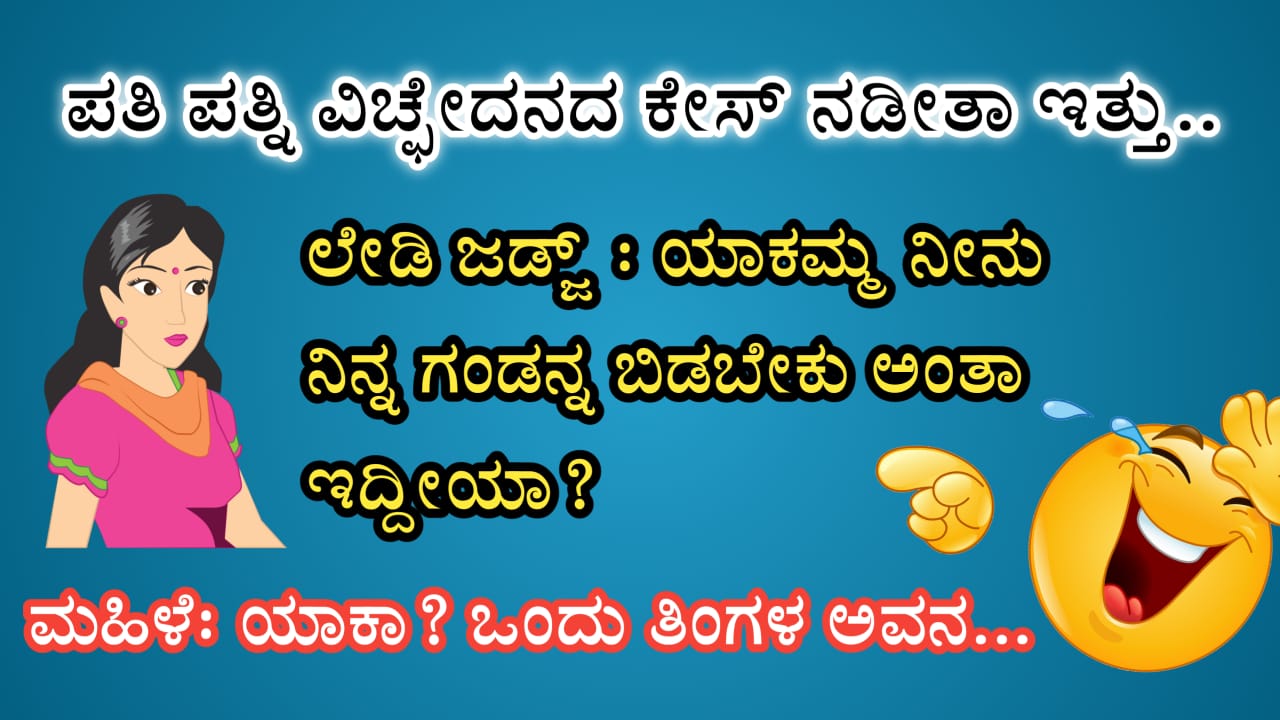 Kannada Jokes- ಪತಿ ಪತ್ನಿ ವಿಚ್ಛೇದನದ ಕೇಸ್ ನಡೀತಾ ಇತ್ತು.. ಲೇಡಿ ಜಡ್ಜ್ : ಯಾಕಮ್ಮ ನೀನು ನಿನ್ನ ಗಂಡನ್ನ ಬಿಡಬೇಕು ಅಂತಾ ಇದ್ದೀಯಾ? ಮಹಿಳೆ: ಯಾಕಾ? ಒಂದು ತಿಂಗಳ ಅವನ…