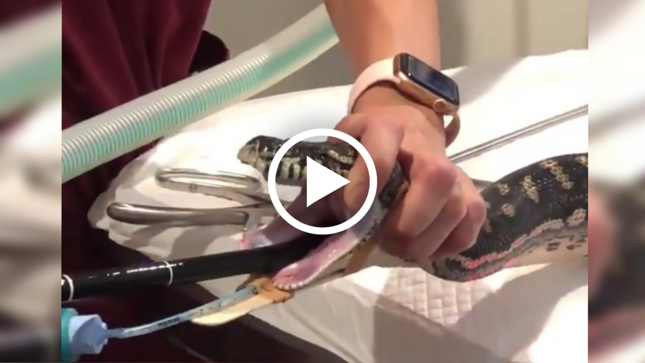 ಹಾವಿನ ಲೈವ್ ಆಪರೇಶನ್! ಡಾಕ್ಟರ್ಸ್ ಗಳು ಹಾವಿನ ಗಂಟಲಲ್ಲಿ ಸಿಲುಕಿದ ಬಟ್ಟೆಯನ್ನು ತೆಗೆದರು ಹೀಗೆ..!