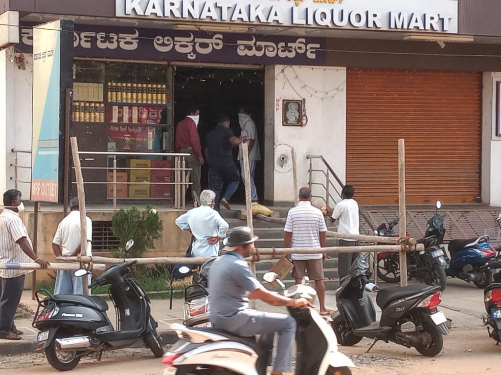 With all necessary pooja by drunken citizen people #LiquorShops are opened in #Bangalore #Bengaluru , just took this video and pics , don't know what to say 🤦😭 pic.twitter.com/nPKbXsdFIG