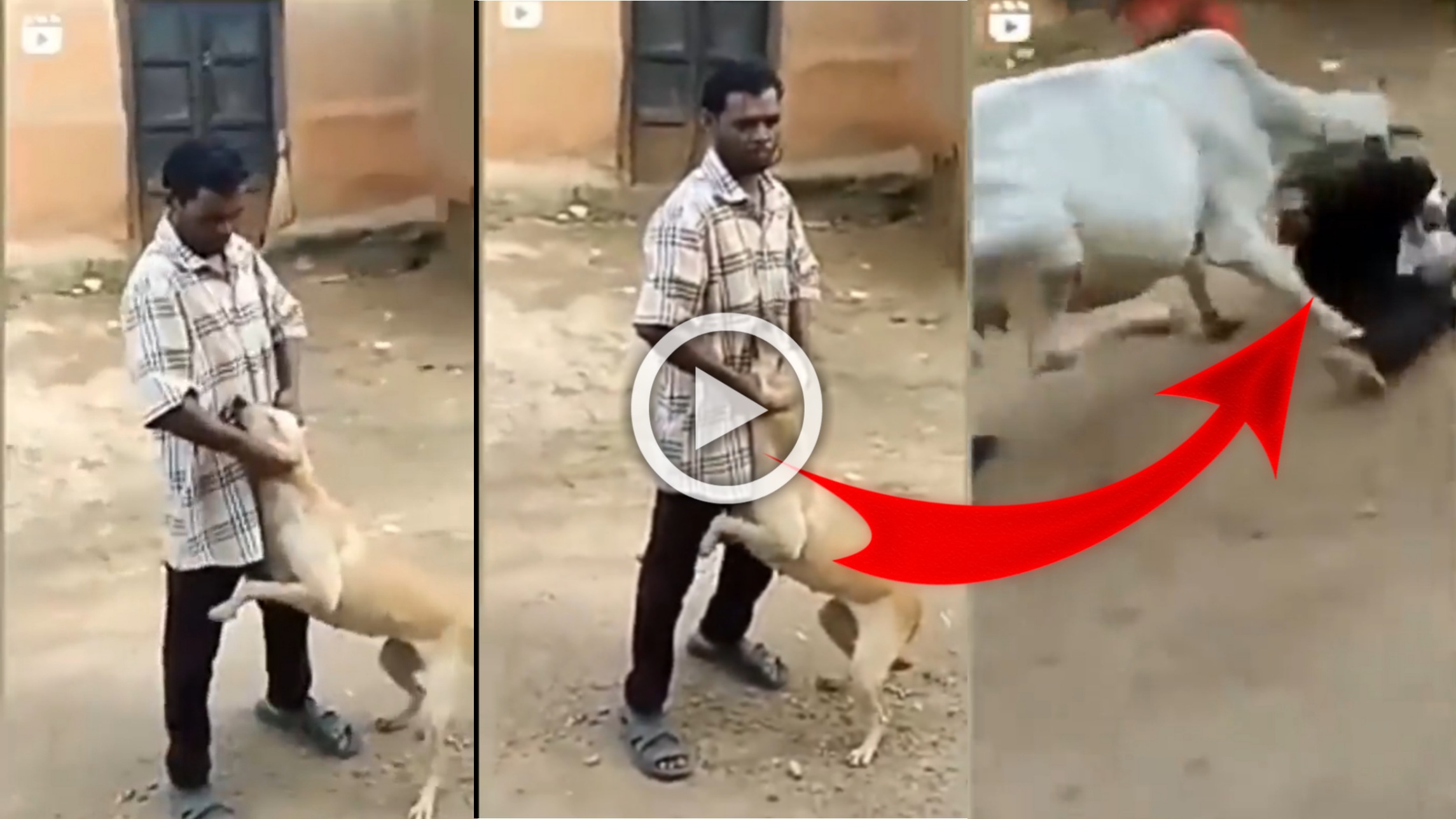 ಬೇರೆಯವರ ಸಹಾಯ ಪಡೆಯಲು ನಾಯಿ ಕೂಗುತ್ತಿರುತ್ತದೆ. ಆದರೆ ಅಲ್ಲಿದ್ದವರಲ್ಲಿ ಯಾರೂ ಸಹ ಈ ಮೂಕ ಪ್ರಾಣಿಯ ಸಹಾಯಕ್ಕೆ ಬರಲಿಲ್ಲ. ಆದರೆ ಅಲ್ಲಿ ಒಂದು ಚಮತ್ಕಾರ ನಡೆಯುತ್ತದೆ. ಈ ಮೂಕ ಪ್ರಾಣಿಯ ಚೀರಾಟ ಆಲಿಸಿದ ಅಲ್ಲಿದ್ದ ಒಂದು ಹಸು ಇದರ ಸಹಾಯಕ್ಕೆ ಓಡೋಡಿ ಬರುತ್ತದೆ. ಓಡಿ ಬಂದು ನಾಯಿಯನ್ನು ಹಿಡಿದ ವ್ಯಕ್ತಿಗೆ ಜೋರಾಗಿ ಹಾಯುತ್ತದೆ. ಹಸು ಹಾದ ತಕ್ಷಣ ಆತನ ಕೈಯಲ್ಲಿದ್ದ ನಾಯಿ ಕೆಳಗಡೆ ಬಿದ್ದು ಆತನಿಂದ ತಪ್ಪಿಸಿಕೊಂಡು ಹೋಗುತ್ತದೆ. ಆದರೆ ರೊಚ್ಚಿಗೆದ್ದ ಹಸು ಜೋರಾಗಿ ಬಂದು ಆತನಿಗೆ ಹಾಯ್ದು ಕೆಳಗಡೆ ಬಿಳಿಸಿ ಆತನಿಗೆ ಹೊಡೆಯಲು ಪ್ರಾರಂಭ ಮಾಡುತ್ತದೆ.