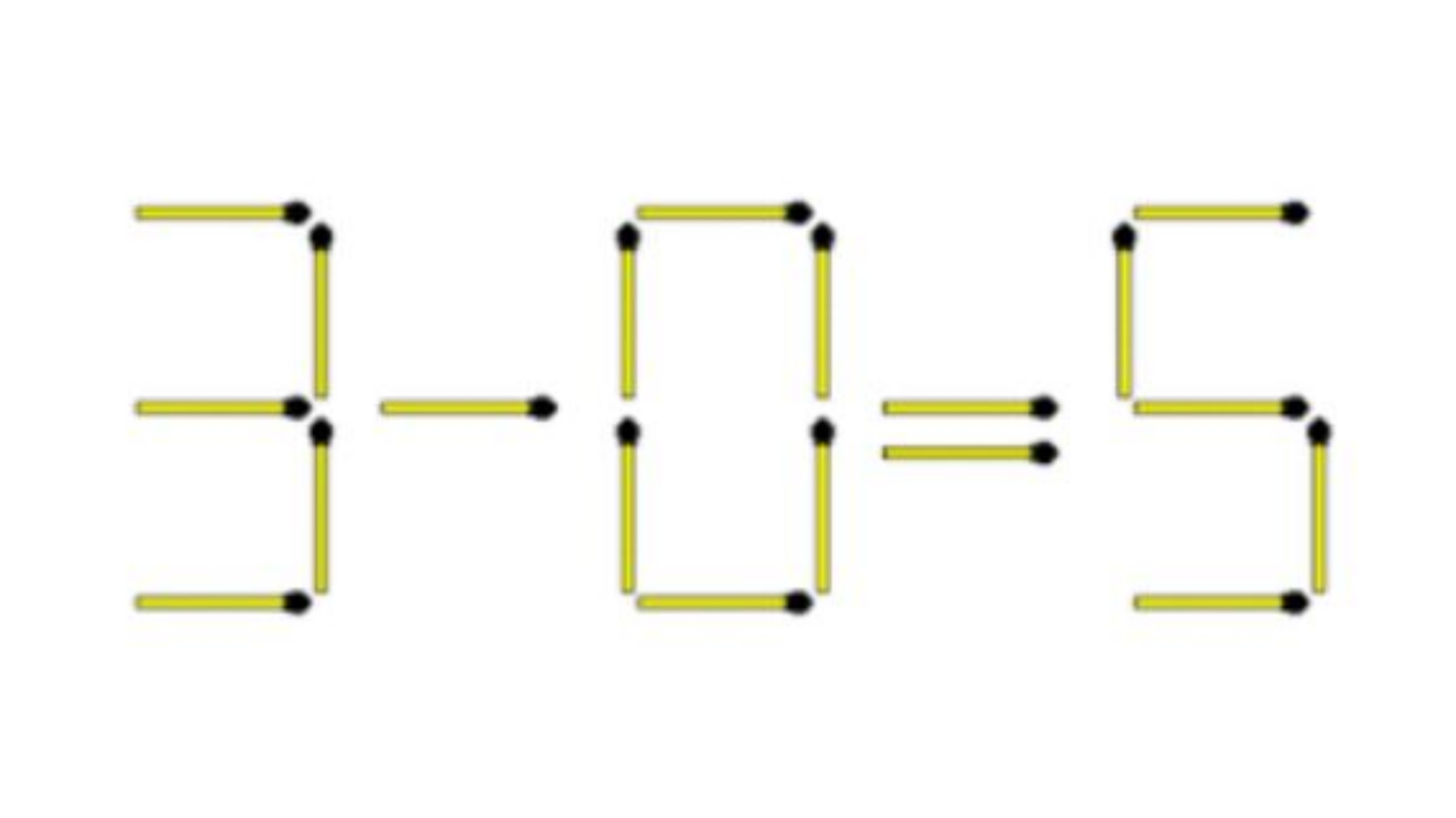 ಇಲ್ಲಿ ನಿಮ್ಮ ಕಣ್ಣಿಗೆ ಕಾಣುತ್ತಿರುವ ಈ ದೀಪದ ಕಡ್ಡಿಗಳಿಂದ ತಯಾರಿಸಿದ ಸಂಖ್ಯೆಗಳಲ್ಲಿ ನೀವು ಎರಡೇ ಎರಡು ದೀಪದಕಡ್ಡಿಗಳನ್ನು ಎಲ್ಲಿಬೇಕಾದಲ್ಲಿ ಸೇರಿಸಿ ಸಮೀಕರಣದ ಉತ್ತರವನ್ನು ಇದ್ದುದರಲ್ಲಿಯೇ ಸರಿಪಡಿಸಿ ತೋರಿಸಬೇಕಾಗಿದೆ. ಹಾಗಾದರೆ ಇದರ ಉತ್ತರ ಹೇಳಲು ಸಾಧ್ಯವೇ? ಇದರ ಉತ್ತರ ತಯಾರಿಸುವಾಗ ಒಂದು ವಿಷಯವನ್ನು ಗಮನದಲ್ಲಿಡಿ. ಅದೇನೆಂದರೆ, ಇಲ್ಲಿ ಬರೀ ಎರಡೇ ಎರಡು ದೀಪದ ಕಡ್ಡಿಗಳನ್ನು ನೀವು ಹೆಚ್ಚುವರಿಯಾಗಿ ಎಲ್ಲಿ ಬೇಕಾದರೂ ಸೇರಿಸಿದಾಗ ಬರುವ ಉತ್ತರ ಏನಾಗಿರುತ್ತದೆ?