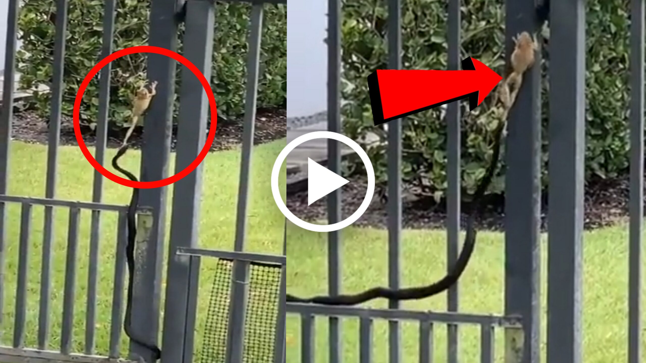 ಪ್ರಸ್ತುತ ವೈರಲ್ ಆಗುತ್ತಿರುವ ವೀಡಿಯೋದಲ್ಲಿ ಒಂದು ಹಾವು ತನ್ನ ಬೇ#ಟೆಯಾದ ಕಪ್ಪೆಯನ್ನು ಹಿಡಿಯುತ್ತದೆ. ಆದರೆ ಕಪ್ಪೆ ಮಾತ್ರ ತುಂಬಾ ಬುದ್ಧಿವಂತಿಕೆಯಿಂದ ಹಾವಿನ ದವಡೆಯಿಂದ ಬಿಡಿಸಿಕೊಳ್ಳುತ್ತದೆ. ಹೇಗೆಂದರೆ, ಮೊದಲು ನೆಲದ ಮೇಲೆ ಅಂದರೆ ಹುಲ್ಲಿನ ಮೇಲೆ ಇದ್ದ ಕಪ್ಪೆಯನ್ನು ಹಾವು ಸಾವಕಾಶವಾಗಿ ಹೋಗಿ ಕಪ್ಪೆಯ ಕಾಲನ್ನು ತನ್ನ ಬಾಯಲ್ಲಿ ಹಿಡಿದು ಇನ್ನೇನು ಪೂರ್ಣ ಭಾಗವನ್ನು ತನ್ನ ಬಾಯಲ್ಲಿ ಹಾಕಿಕೊಳ್ಳಬೇಕು ಅನ್ನೋವಷ್ಟರಲ್ಲಿ ಕಪ್ಪೆ ಬಿದ್ಧಿವಂತಿಕೆಯಿಂದ ಹಾಗೆ ಮುಂದೆ ಮುಂದೆ ಹೋಗುತ್ತದೆ. ತನಗಿಂತ ಎಷ್ಟೋ ಪಟ್ಟು ಶಕ್ತಿಯುಳ್ಳ ಹಾವನ್ನು ಸಹ ಲೆಕ್ಕಿಸದೆ ತನ್ನ ಪ್ರಾಣವನ್ನು ಹೇಗಾದರೂ ಮಾಡಿ ಉಳಿಸಿಕೊಳ್ಳಬೇಕು ಎಂದು ಮನದಲ್ಲಿ ವಿಚಾರ ಮಾಡಿ ಕಪ್ಪೆ ಅಲ್ಲಿದ್ದ ಗೇಟ್ ಮೇಲೆ ಹತ್ತುತ್ತದೆ. ಆದರೂ ಸಹ ಹಾವು ಕಪ್ಪೆಯ ಕಾಲನ್ನು ಬಿಡುವದಿಲ್ಲ, ಕಪ್ಪೆಯು ಸಹ ತನ್ನ ಬಳಿಯಲ್ಲಿದ್ದ ಎಲ್ಲ ಶಕ್ತಿಯನ್ನು ಉಪಯೋಗಿಸಿ ಗೇಟ್ ಮೇಲೆ ಹತ್ತುತ್ತದೆ ಸತತವಾಗಿ ಪ್ರಯತ್ನ ಮಾಡುತ್ತಾ ಕಪ್ಪೆ ಗೇಟ್ ನ ಮೇಲೆ ಹಾಗೆ ಮುಂದೆ ಮುಂದೆ ಹೋಗುತ್ತದೆ ಕೊನೆಗೆ ಹಾವು ತುಂಬಾ ಆಯಾಸಾವಾಗಿ ಕಪ್ಪೆಯನ್ನು ಬಿಟ್ಟು ಬಿಡುತ್ತದೆ. ಆಗ ಕಪ್ಪೆ ಖುಷಿಯಿಂದ ಗೇಟ್ ಮೇಲೆ ಹತ್ತಿ ಅಲ್ಲಿಂದ ಪಲಾಯನ ಮಾಡುತ್ತದೆ. ನಾವು ಸತತವಾಗಿ ಪ್ರಯತ್ನ ಮಾಡಿದರೆ ಯಶಸ್ಸು ದೊರೆಯುತ್ತದೆ ಅನ್ನೋದನ್ನು ಈ ವಿಡಿಯೋದಿಂದ ತಿಳಿದು ಬರುತ್ತದೆ.