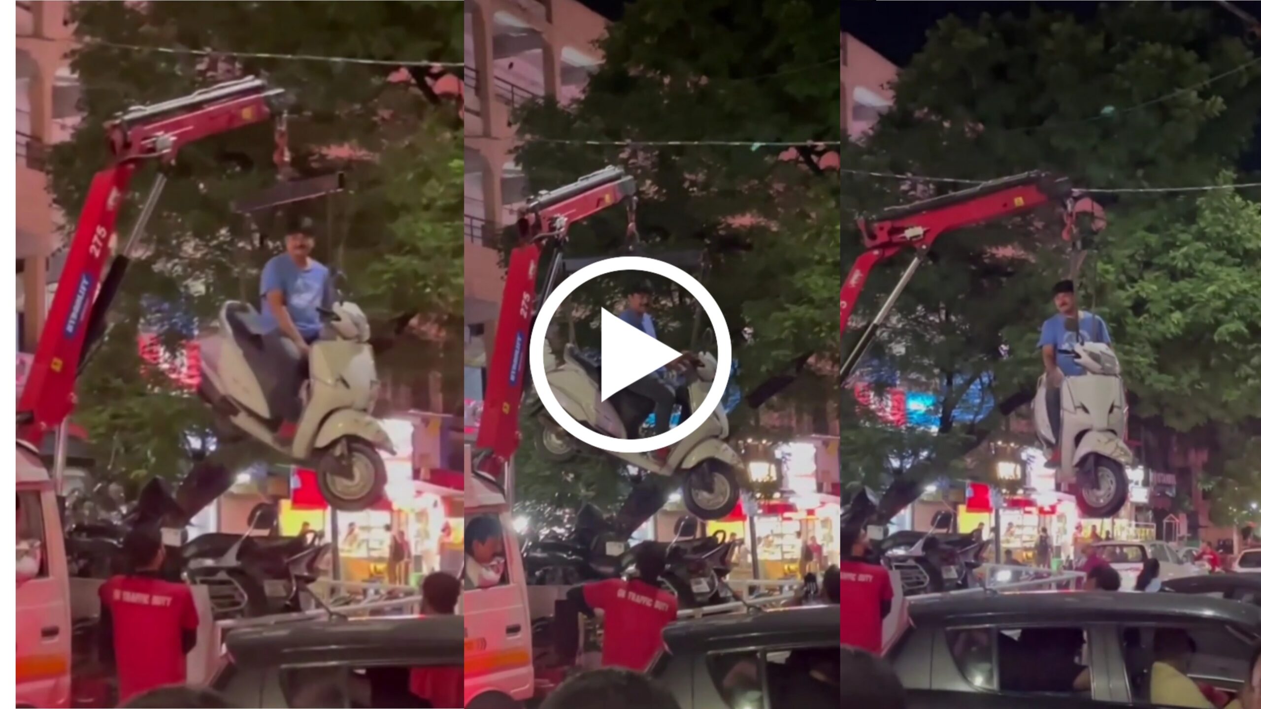 No Parking ನಲ್ಲಿ ನಿಂತ ಸ್ಕೂಟಿಯನ್ನು ಮಾಲೀಕನ ಜೊತೆಯೇ ಹವೆಯಲ್ಲಿ ಎತ್ತಿದ ಕ್ರೇನ್ ಚಾಲಕ! ವ್ಯಕ್ತಿ ನೇತಾಡುವ ವಿಡಿಯೋ ವೈರಲ್.