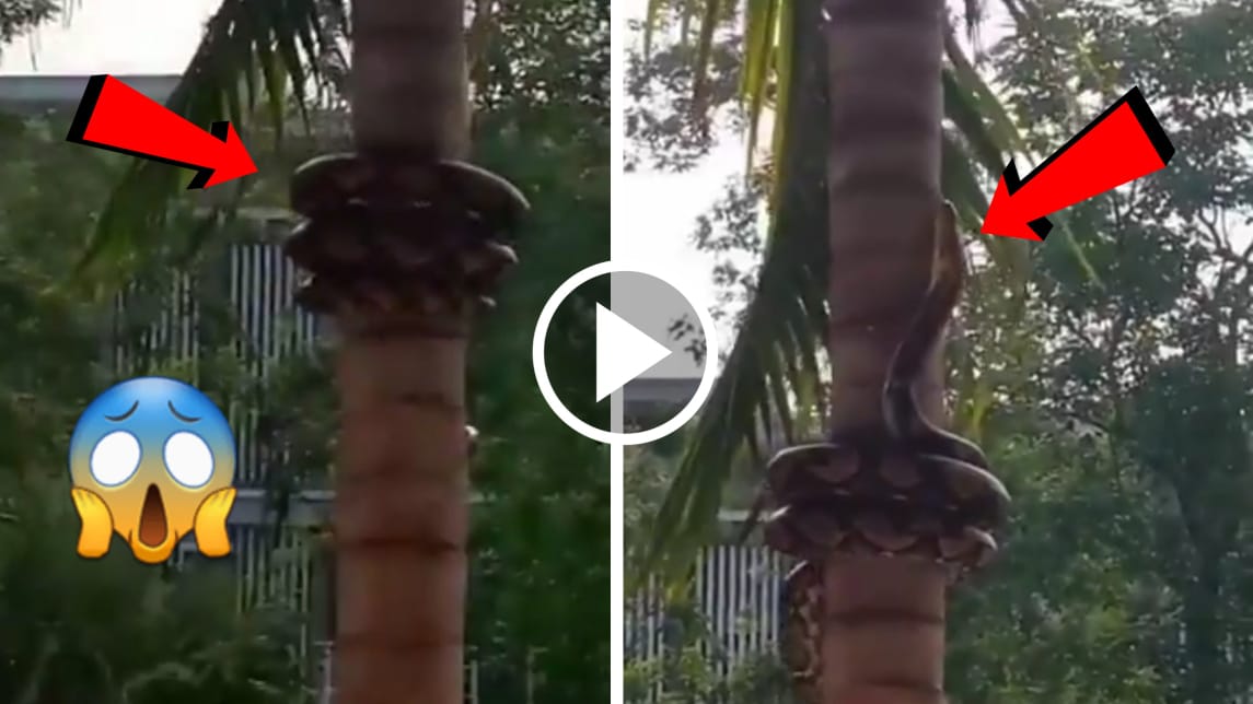 OMG! ತೆಂಗಿನ ಮರವನ್ನು ಏರುತ್ತಿರುವ ಬೃಹತ್ ಗಾತ್ರದ ಹೆಬ್ಬಾವು! ಹೆಬ್ಬಾವಿನ ಮರ ಏರುವ ಟೆಕ್ನಿಕ್ ನೋಡಿ ‘ವಾವ್’ ಎಂದ ಜನ!