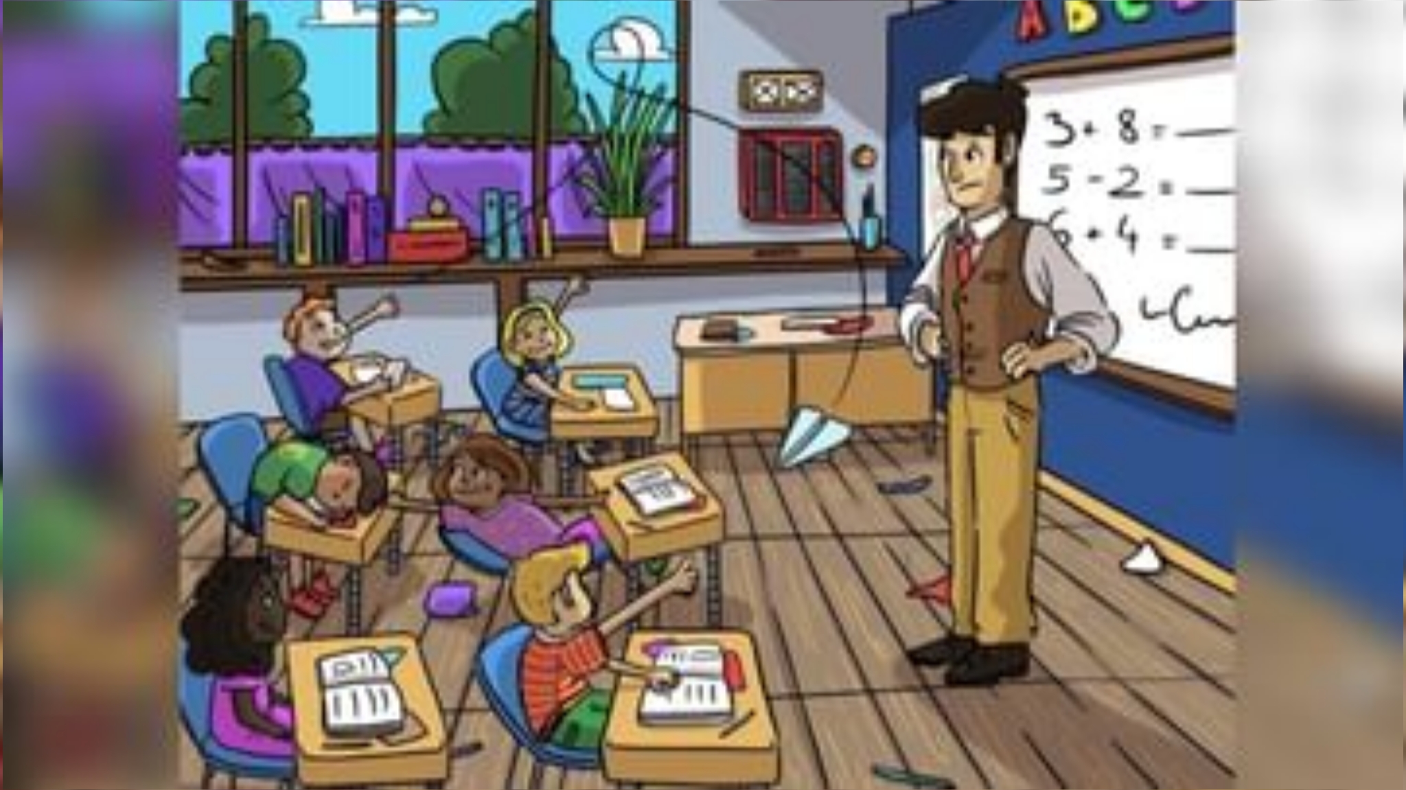 ಆಪ್ಟಿಕಲ್ ಇಲ್ಯೂಷನ್ ರೂಪದಲ್ಲಿರುವ ಈ ಪೇಂಟಿಂಗ್ ನಲ್ಲಿ ಶಾಲೆಯ ಕ್ಲಾಸ್ ರೂಮಿನ ದೃಶ್ಯ ಕಂಡು ಬರುತ್ತಿದೆ. ಇಲ್ಲಿ ಶಿಕ್ಷಕರು ಬೋರ್ಡ್ ಮೇಲೆ ಗಣಿತದ ಕೆಲವು ಪ್ರಶ್ನೆಗಳನ್ನು ಕೇಳಿದ್ದಾರೆ. ಅದರ ಉತ್ತರವನ್ನು ಶಿಕ್ಷಕರು ಮಕ್ಕಳಿಂದ ಅಪೇಕ್ಷಿಸಿದ್ದಾರೆ. ಆದರೆ ಈ ಚಿತ್ರದಲ್ಲಿ ಕಂಡು ಬರುವಂತೆ ಮಕ್ಕಳು ಮಾತ್ರ ತುಂಬಾ ಮಸ್ತಿ, ಮಜಾಕ್ ಮೂಡ್ ನಲ್ಲಿರುವಂತೆ ತಿಳಿದು ಬರುತ್ತಿದೆ. ಮಕ್ಕಳ ಈ ತುಂಟಾಟತನದಿಂದಾಗಿ ಶಿಕ್ಷಕರ ಕನ್ನಡಕ ಕ್ಲಾಸ್ ರೂಮಿನಲ್ಲಿ ಎಲ್ಲಿಯೋ ಒಂದು ಕಡೆ ಕಳೆದು ಹೋಗಿದೆ. ಇದರದೇ ಲಾಭ ಪಡೆದುಕೊಂಡು ಮಕ್ಕಳು ಕ್ಲಾಸ್ ರೂಮಿನಲ್ಲಿ ಭರ್ಜರಿಯಾಗಿ ಮಸ್ತಿ ಮಾಡುತ್ತಿದ್ದಾರೆ. ಈಗ ಈ ಶಿಕ್ಷಕರಿಗೆ ಕನ್ನಡಕ ಹುಡುಕಲು ನೀವೇ ಸಹಾಯ ಮಾಡಬೇಕಾಗಿದೆ. ಹಾಗೂ ಮಕ್ಕಳ ಅಭ್ಯಾಸ ಮತ್ತೆ ಪ್ರಾರಂಭ ಮಾಡಬೇಕಾಗಿದೆ. ಹಾಗಾದರೆ ಈ ಕನ್ನಡಕವನ್ನು ಹುಡುಕುವ ಪ್ರಯತ್ನ ಶುರು ಮಾಡಿ ಮಿತ್ರರೇ. ಕೇವಲ ಹತ್ತೇ ಹತ್ತು ಸೆಕೆಂಡುಗಳಲ್ಲಿ ಈ ಚಾಲೆಂಜ್ ನೀವು ಪೂರ್ಣ ಮಾಡಬೇಕಾಗಿದೆ. ಅಂದಾಗ ಮಾತ್ರ ಈ ಆಟದಲ್ಲಿ ನೀವು ಗೆದ್ದಂತೆ.
