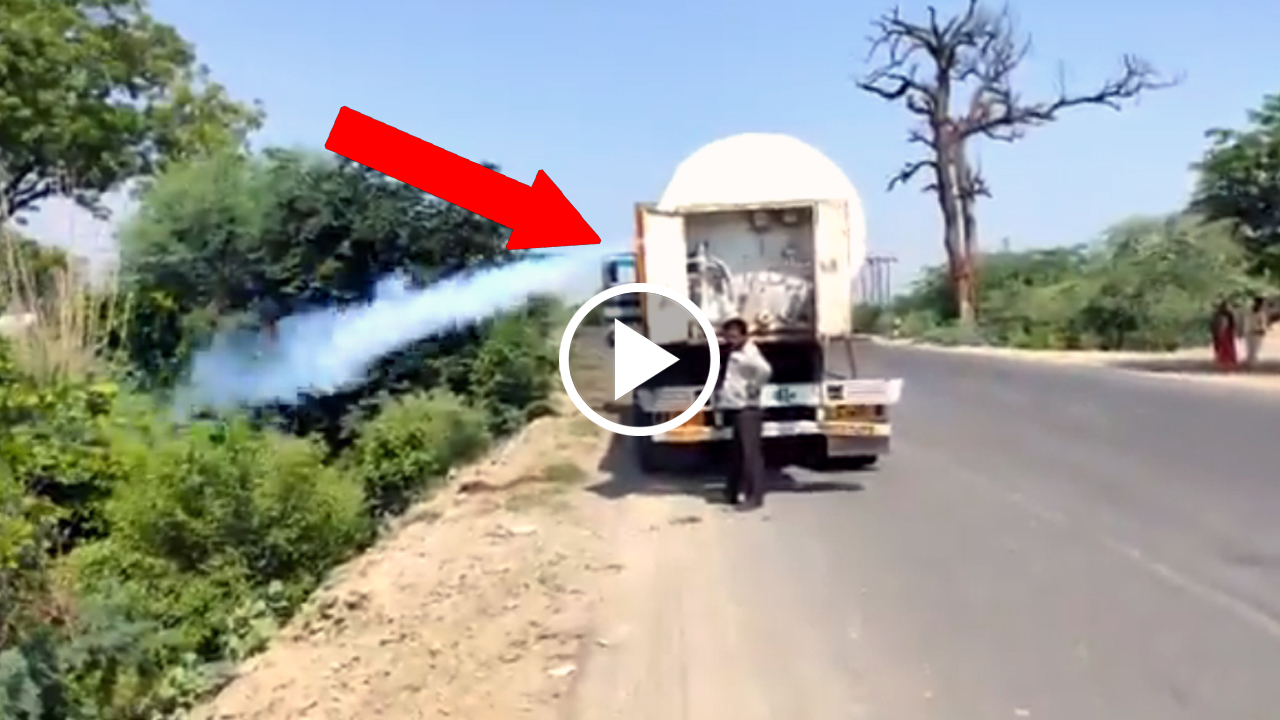 ವಿಡಿಯೋ : ರಸ್ತೆ ಮಧ್ಯ ಟ್ಯಾಂಕರ್ ನಿಲ್ಲಿಸಿ ಆಕ್ಸಿಜನ್ ಹೊರಚೆಲ್ಲಿದ ಚಾಲಕ! ಕಾರಣವಾದರೂ ಏನು?
